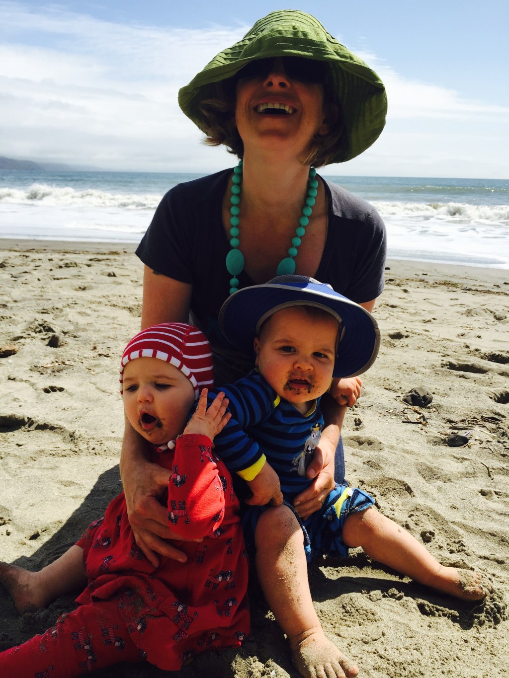 I peer over into the play area, “They’re doing great.” I say to myself. Then Jack runs over to the fence that separates him from the kitchen stairs. I look at him, he smiles. I get up and go down to hang out with them for a minute. “Whatcha doin’? whatcha into this mornin’? ew I smell a poo! Jack did you poo? Let’s go change your diaper. We’ll be right back Fi.” I say. My new favorite thing to do in the morning, drink coffee and write. This kitchen is a mess. A real mess. I’ll clean it. I’m a mess too, I didn’t take a shower last night after the beach trip and there’s sand in my toes. The beach is a magical place. The ocean waves, there’s gotta be waves, the sound they make, the smell of the salt and seaweed, wood, burnt or decaying. Dead remains of seagulls, crabs, fish, whales, and sea lions. Shells and rocks and the sand. The sun and the wind. Old piers, old buoys, pushing our feet into the deeper, colder, wetter sand. Fear that Jack will run into the ocean and join the aquatic world, “You’ll get swept away Jack! Don’t get too close to the waves.” I say. I feel bad I didn’t bring Billy, but she’s a liability. I’ll bring her next time, when we go, maybe this week. We’ll go to one of my special spots where there’s never any people. Billy can run and play and I’ll put one baby in the frame pack, it has space for our lunch and diapers. I’ll carry the other baby. It will be work, but I think I’m strong enough to pull it off. Jack might even be able to walk part of the way over the sand dune. I can’t wait to get back to the beach. I love watching the babies investigate. Fiona stays close to me, she likes examining the sand and things that are nearby us. Jack takes off, looking at piles of seaweed, visiting other people on the beach. Stealing other people’s food. He goes over to this man with his 2 year old yesterday. They are having their snack, Jack grabs one of their crackers right in front of them and puts it in his mouth. They also have beach toys that Jack wants to play with. One time the man took his kid on a little walk and the moment they left their area Jack ran over to try to get something of theirs! Fiona got her new hearing aid molds, she wore her hearing aids all weekend long. She’s so much happier. I think I was right last week when she was whining so much, I think she was missing her hearing aids. She knows now that she can’t hear without them. Which is probably a good thing for me, maybe she won’t pull them out as much. But there must be an element of loss for her. Last night I kept the hearing aids on even during bath time. Very risky of course but there’s so much language to learn and sounds to hear during bath time. When I was putting on her PJ’s I told her I’m taking off your hearing aids now, after they were removed she touched her ears and looked sad, I felt what she went through at that moment, from a world of hearing to faint muffled sound.