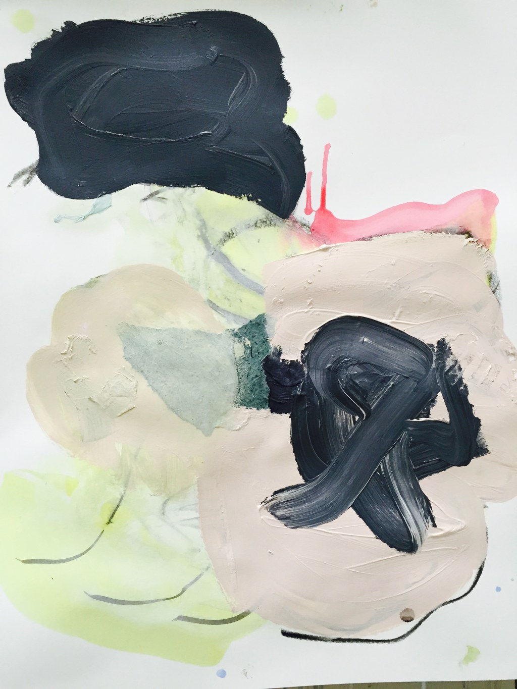 “MMM it’s good.” I say. “What’s good?” says Alan. (He stayed home from work today because of the rain.) “My Green tea”. I say, it’s really good. I put the honey I usually put in my coffee on my toast with Banana and almond butter. Jack and Fiona are still sleeping, it’s 7:19 AM, this scares me. Whenever they sleep unusually late they have been sick. I can hear little noises on the monitor, Alan has decided to go down to get them. This is very nice of him. I’m missing Jack and Fiona right now though, I’m missing going in and saying, “Good morning” Giving them big hugs and cuddles. I don’t miss changing their diaper. Alan just brought up Fiona, I grabbed her gave her a hug, put her in the high chair, but all she really wanted was her bottle. I have everything ready. When Alan got home from work last night he wanted to cuddle the babies but they kept coming to me. They wanted to go to bed. Ah Jack, he gave me the sweetest smile and cuddle. I wonder if it’s OK to have a second cup of green tea. “Wait let me finish this really fast.” I say to Alan. (Several Times) A lot of talking, questions, conversations are happening right now that are breaking my concentration. I had some time in the studio yesterday. I have an idea, prep the paper, lay down some paint. I like what first comes out, I’m doing self-portraits, need to let them dry. Multi task, work on the laundry and clean my closet. I go back to my studio. I HATE them, I start working, nothing’s happening. I start to panic. I want to smoke some pot. But I don’t because I’m cutting back in preparation for my cleanse next week. I leave again, work on more chores. Come back, mix some new paint, new colors, the creativity is finally starting to flow. I’m excited. I am liking how these are turning out. I lean towards dark colors when I’m PMS’ing and self –loathing. I usually cover everything up with black paint and throw it in the trash. This is a definite improvement. That is the other thing the Zoloft did, it removed my self-loathing component. How does it do that? I did it by myself yesterday though which is great news for me. I am changing. Naturally.