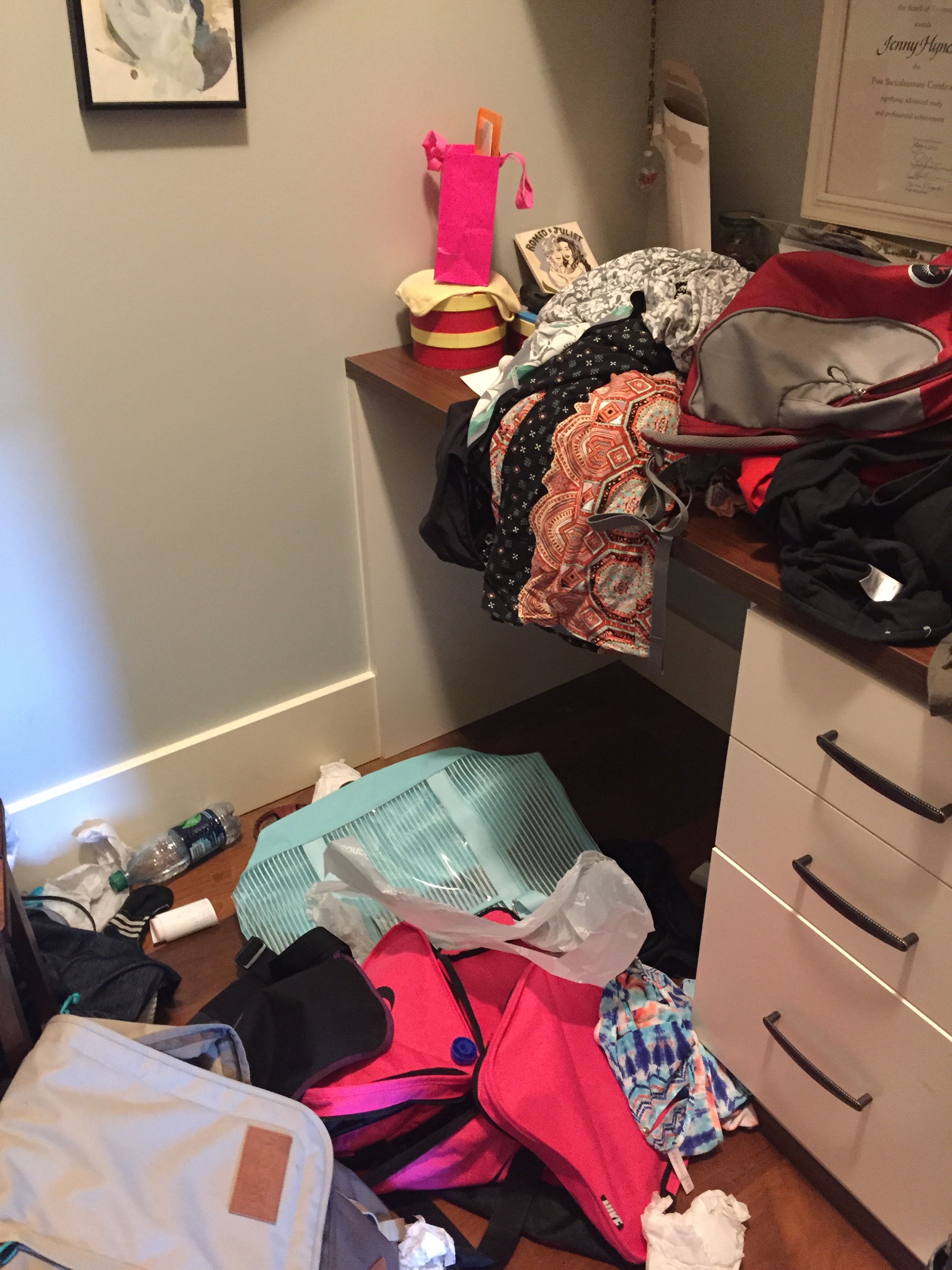 The top floor is almost entirely safe for Jack and Fiona! Today lindsey and I organized the rest of the drawers in the kitchen, we locked up the tupperwear, got rid of all the Dr.Brown bottles but six, it felt so great! Clutter be gone. I took the microwave out of the kitchen because the babies figured out how to turn it on. I have a bit of time left before Lindsey goes home, wanted to paint but my closet is a wreck.