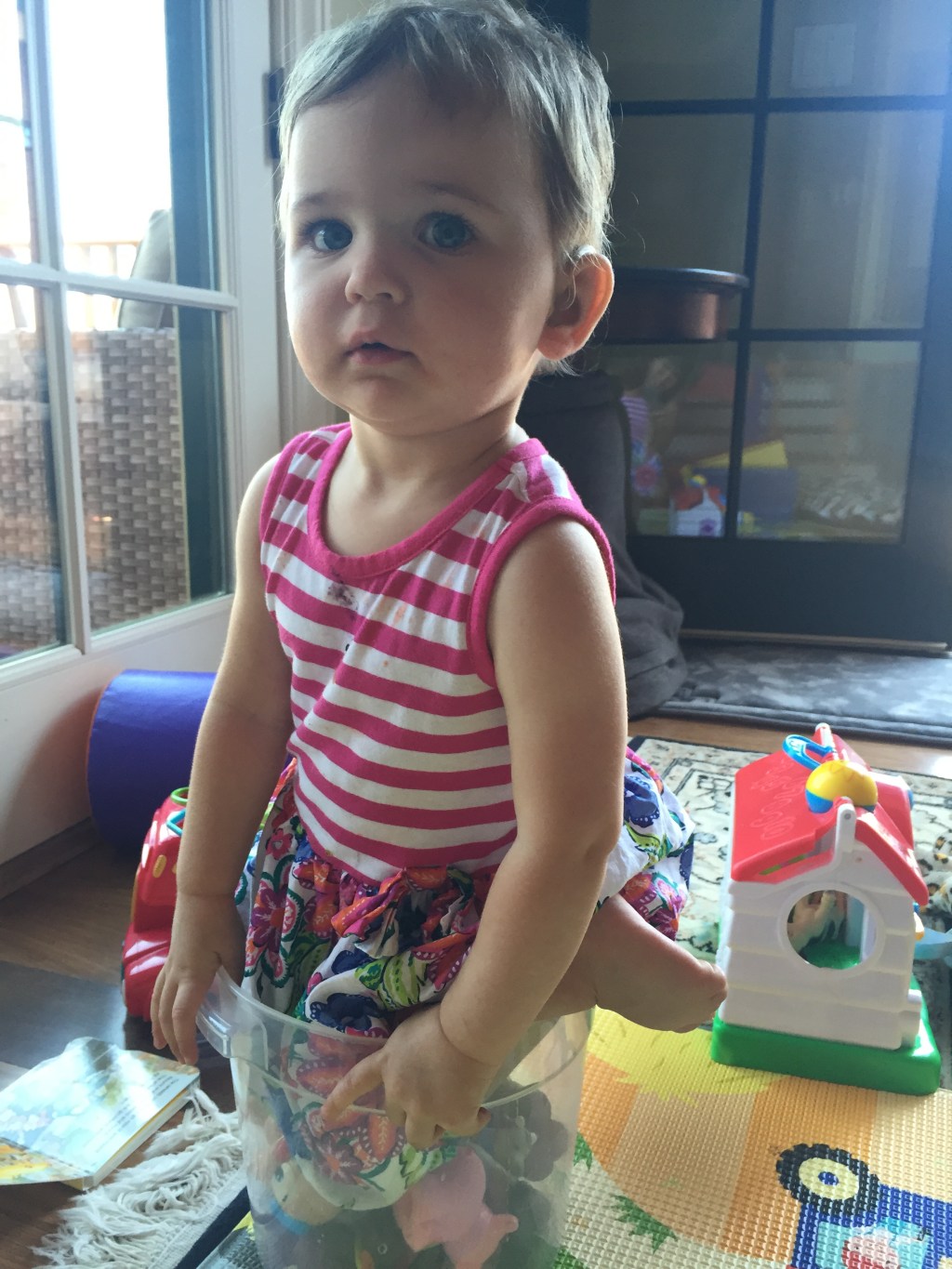 There’s two rules for the fake stream at the discovery museum, one, no climbing in the stream and two, have fun. I am in the process of getting Fiona’s shoes on and a few ladies are calling for my attention. Jack’s in the stream stomping his feet, I go over and take him out. He climbs right back in. My words “No, you can’t climb in the stream” mean absolutely nothing, it’s like I’m not talking at all. He gets pretty wet, but he’s not fazed. We go play in the outdoor tot area and I’ve never seen Jack have such a good time. He runs around climbing on the rope ladder, climbs up and down the soft steps, and plays in the tunnel. This is the highlight of the day because there’s a big dirty puddle inside! He’s so excited and so wet and dirty! Lucky I have a whole new outfit for him! My Dad and Betty are with us and it’s not as bad as I thought it would be. My dad helps watch the babies, he follows them, holds their hand when I tell him to. He’s gentle and surprisingly present. He’s very quiet and reserved. He’s still a free loader, but he’s definitely on his best behavior. Betty keeps him on his toes with her regular prodding. It feels strange to call him grandpa. But for the second time since my mom died I felt like a daughter, the first time was with Bruce when he came to visit. There’s something about that, I can’t quiet explain it yet, but it’s a place of comfort. Even though I have no relationship with my Dad. I’m sure he’ll ask us for something in the near future, like money, and he doesn’t get a free pass for treating Danny and I the way he did. But the visits not as dreadful as I imagined it would be.
