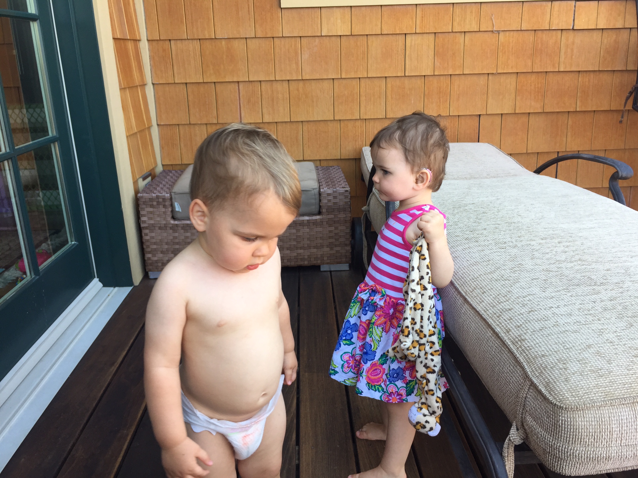 The other difficult transition during this phase is nap times. When Jack and Fiona turned one year old I was ecstatic. They finally started taking two naps, one at 9:00 and one at 2:00. I could really depend on those times to relax or work in my studio, or clean! This lasted a wonderful three months. Then all of the sudden they didn’t want to take a nine o’clock nap or worse one would and one wouldn’t. This lasted several weeks until I decided I would try to transition them to one nap. It’s unreliable still, for example yesterday they didn’t take a nap until 12:00, and it was only an hour and a half. Today they went to sleep at 9:30 and are still sleeping now, it’s 11:45! I have no idea if they will take another nap today or will stay awake until bedtime and get super cranky at 4:00pm. It’s been hard to plan stuff, like going to the gym or making play dates.