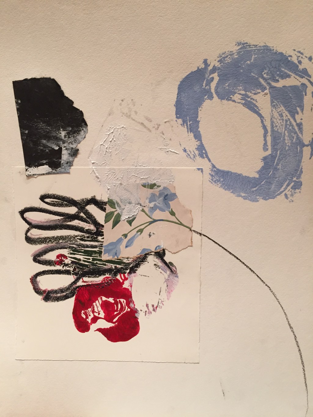 Yesterday was the longest amount of time I’ve been away from the babies since they’ve been born. I left my house at 11Am and returned home at 7PM. As I drove east a smoky haze covered the sky falling down and touching the horizon line. The pollution layered my already dissatisfied mood with a touch of depression. I had been looking forward to doing the Rhythm and Presence workshop for months. The first time I signed up I wasn’t able to go because the babies were still babies and that got in my way. This time nothing was going to stop me, my own mind tried. It told me, after my friend said he wasn’t coming along because he was sick, “You’re too tired too, you should go hide, watch a movie, you shouldn’t be around people.” I told my mind to “SHUT UP!” and I got in my car and started to drive in the direction of the workshop. Insecurities crept in along the way, I historically have problems working in front of other people. But the way this workshop was set up overcame that obstacle with “ice breaker” exercises that really got me feeling relaxed and comfortable. I worked like a crazy person, painting, collaging, working with Carl and Heather, learning as much as I could from them. I got to work for around five glorious hours straight. It was fantastic, and depressing at the same time. I finally felt like myself again, I was working, I was in an amazing Art Center, surrounded by wonderful artists. On my way down I started to think I needed anti-depressants again because I’ve been feeling myself sinking deeper into my anti-social self. But once I arrived at the workshop I was fine. I was myself again, all the discontent of the weeks prior slipped out of my system. The paper, paint, chalk and charcoal in my hands expressing ideas to me. The glues bonding pieces, turning one thing into another without a plan, just a direction to go in and a surprise waiting to reveal itself. I needed that, to work with other artists, to remind myself there is a place I belong.