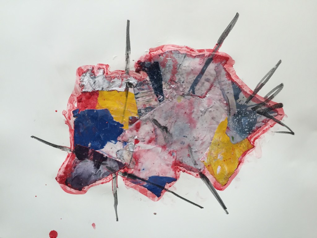 I had time this afternoon to do some experimentation. I am recycling my old works on paper and re-using them. It’s exciting and I feel like new ideas are emerging through the process. The work makes me think of maps or documents of the past. The disappearing of the old and reappearing of something new. I’ve internalized the discussion of the melting glaciers and the shrinking coastlines. Maybe it’s starting to come out in my work. But not conciously, i’m still working from intuition and spontanaity and if I was to say I was working on landscapes I would be talking about internal landscapes. But just like the disappearing shorelines I am disappearing too. Someday I will no longer be here. Nothing is permanent.