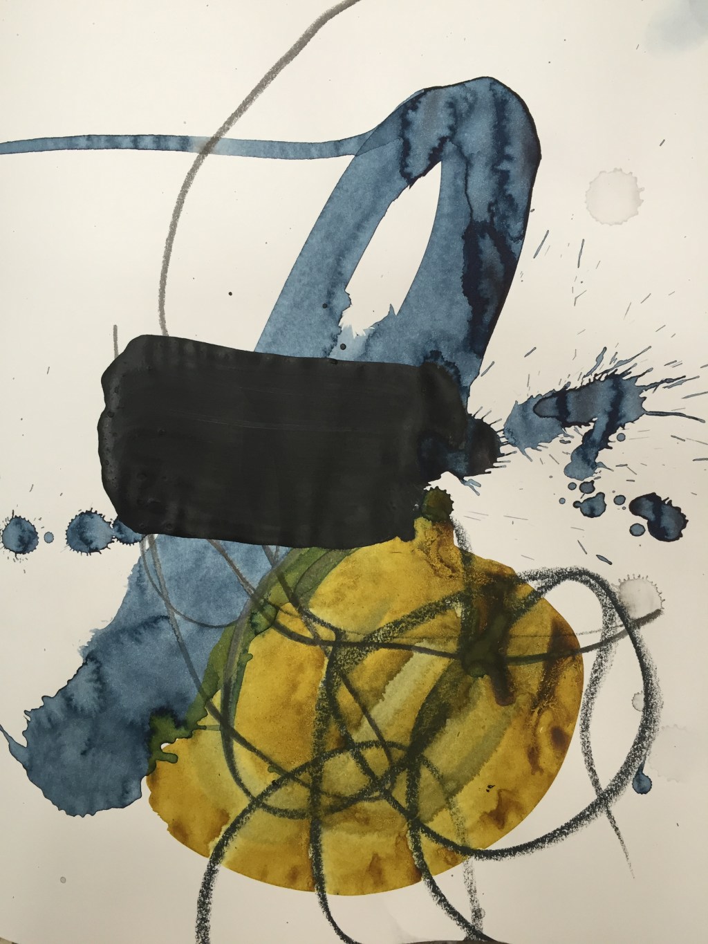 I said “I’ll be right back.” Lindsay was leaving in twenty minutes, I needed a few minutes to myself before she left. I put in a load of laundry and headed out to my studio, knowing I didn’t have time to work, but maybe just a few marks in my notebook. I look at the time again, fifteen minutes remaining. I mix my favorite watercolor, indigo and start painting, grab my graphite, do some spontaneous drawing. It’s feeling good, I add some collage to a few, before I know it I have several pieces done.