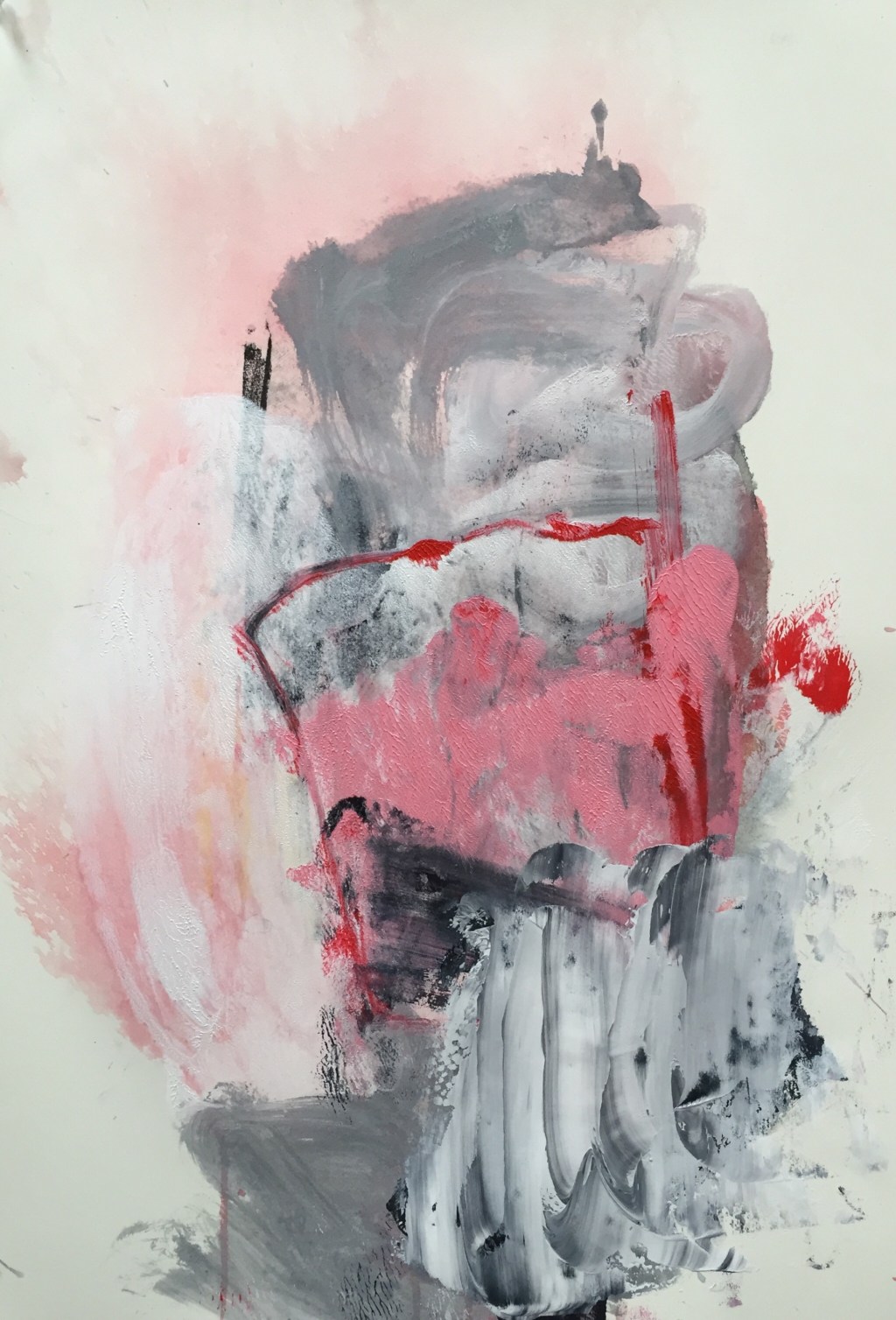When I walked into my studio I saw the paintings I had done yesterday and had to paint just a little, I was inspired. I ripped my paper and started with pencil, crayon, then watercolor and acrylic. Most were ripped up to be used as collage but at the end something happened. I was surprised, I thought I was way too tired to paint.