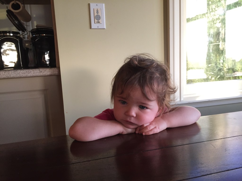 The sky is slowly turning from darkness to light blues, a very light mauve, bright fushia at the horizon line, and a scatter of whitish grey textured like curdled milk clouds. I hear the hum of the freeway, some cawing from a bird, I think it’s a Blue Jay, and that’s it. I don’t hear Jack or Fiona yet and it’s past seven. I’ve got the bottles ready so when I hear “mama” I can go down and start the morning off mellow.