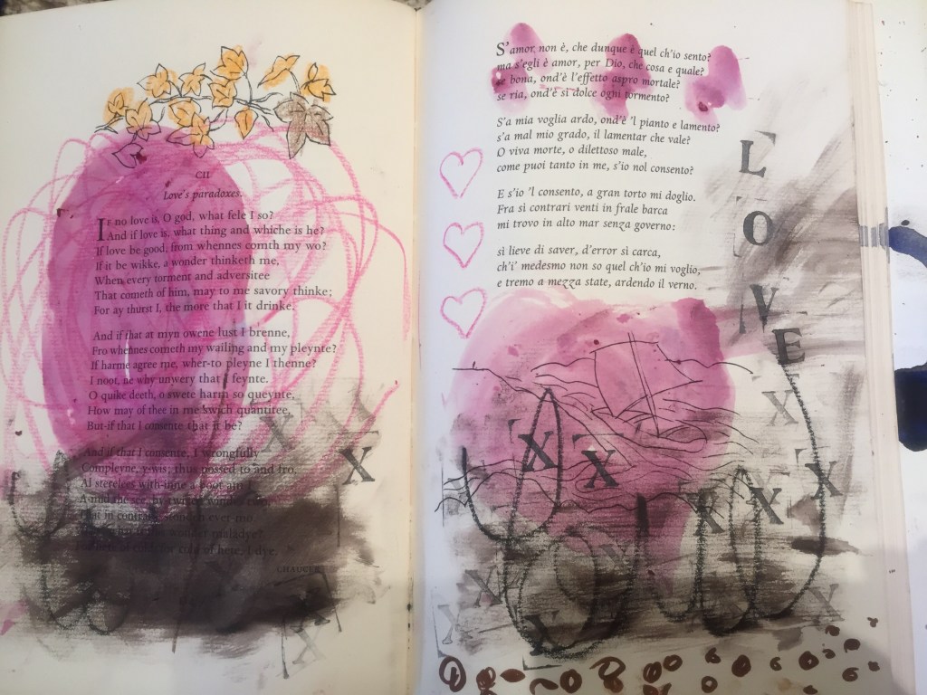 We were sucking seeds out of a pomegranate when I had to see what the stain of juice would look like on the pages.
