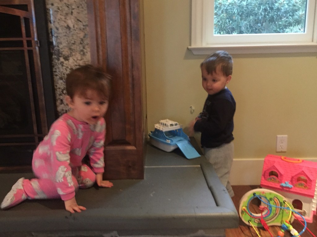 Fiona then throws her tiger down the stairs, as if I’m goung to get up and get it for her. They need to learn how to play on their own.