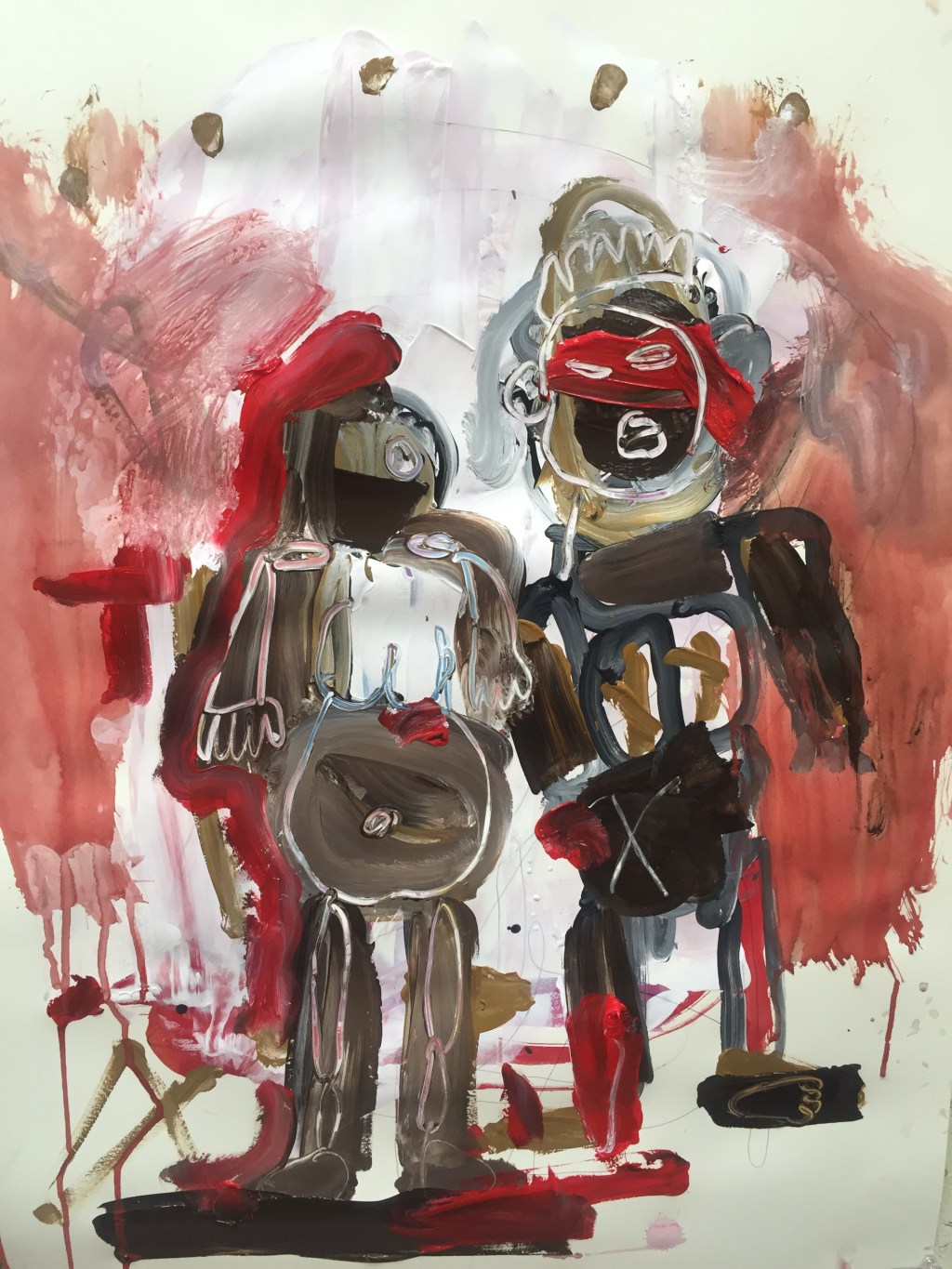 12:09 Monday afternoon. Nice summer day, babies eating lunch, watching a movie, “Inside Out”, Brilliant movie! I’m leaning in, watching a few clips, trying to get motivated to pick up the house, do some dishes, feed the dog. We spent the whole weekend home, playing outside in the yard, in the sandbox, playing with trucks, painting, in fact watching Fiona paint reminds me of honest mark making, spontaneous, experimental, everything I hold sacred. The browns she creates, beautiful. The mess she makes, unbelievable! The mess that I sit here in front of right now, the mess that is always growing, getting bigger. I can’t control it. Especially when I’m alone. It’s not possible. I say this as Jack dances on the table naked, picks up a handful of fries and throws them on the floor. He grabs another handful and eats them. My dog climbs onto the table to finish off the plates of food. My son climbs off the table and pees on the floor. I think about all the puppies I’ve had, how Jack’s like a little puppy. But a puppy I would scold, say, “bad puppy, go outside to go potty” But when Jack or Fiona do it, I just say, “Oh no! Why didn’t you go to the potty?” But I know the answer already, at least one of the answers, they don’t want to stop playing! They’re only two and a half, they probably don’t have the control and quick response needed to get to the toilet, but they also don’t want to wear diapers anymore. I picked up two poops in the backyard yesterday, one Jack, one Fiona. Then sprayed off their butts! Lucky it’s summer! At nap times they take off their diapers and jump in their pee. I’ve been thinking about putting tape around their diapers to keep them on. But I wonder is that taking something away from their natural development? I tend to look at all things they do in that way, especially messes. Tantrums and annoying whining behavior I have zero tolerance for, I’m getting good at navigating those, but the making messes and taking off their diapers and painting on their bodies, that stuff just seems normal to me. It also feels draining when I try to control their every move and not let them mess up the house! I don’t know, it’s just so much work!