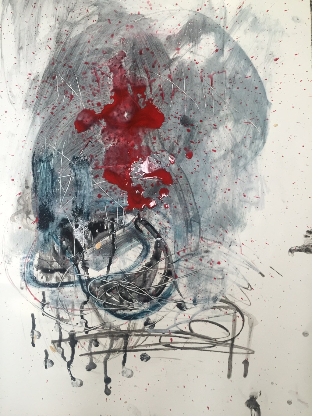 Fan on, back and fourth, made it work. Can’t stop. Problem. When begin working on series, project for new show get obsessed. Forced myself to eat two hard boiled eggs, drink one red stripe and drink two cups of water. This is what happens. I have a lot to sell for $150. And I have my series almost complete. It includes various sizes on canvas, paper, and board. A variety of prices, a variety of materials. As well as collabs between me and Carl and Carls selection of Solo New Works. It should make for quite a show. For Sure. I just want to keep on working but I only have an hour and a half. Panic. I need to walk the dog, take a shower, and get it together enough to take the babies to the grocery store and make dinner. Today the worlds collide. How can I rectify this? I don’t know, but I know I need to leave soon to take Billy for a walk. I made good progress in my studio today. At least there’s that. I was glad to get to this week, I actually have extra help this week, perfect timing for show prep. It does feel good, but I wish I had a little more time. That’s the thing, when you have kids. I can’t just disappear for fourty eight hours working non-stop in my studio. I have to leave, not knowing when I will be able to work again. Jack seemed like he wasn’t feeling well this morning. What if he gets sick and needs round the clock Mommy? Or the babysitter gets sick? Or her kids? So many things to get in the way of my studio time. I take a deep breath. This is the way it is. Must accept. Input. Acceptance. Flow with it. Sympatico.