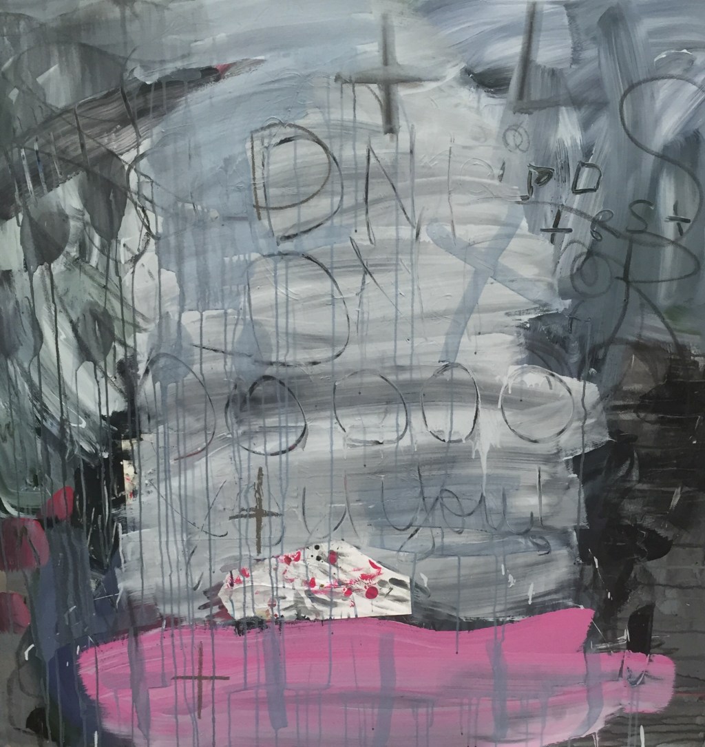 I go into my studio, not intending on working. The babies are asleep; the house is a disaster. I should go up and clean. I decide to work for an hour. I pull out my notebooks, open them up and lay them out. Grab: paints, containers, brushes, palette knives, rags, charcoal, graphite. I work fast, subdued washes, some lines, some print techniques. I work on my canvases again, I’m overthinking. No fun. I accept this and fight for the opportunity to do so. Destroying and covering. Reworking. I think I like it. I’m glad I came in and worked. It’s important to work when I feel the urge and I have the energy. I’ll do the housework later. Which is Now.