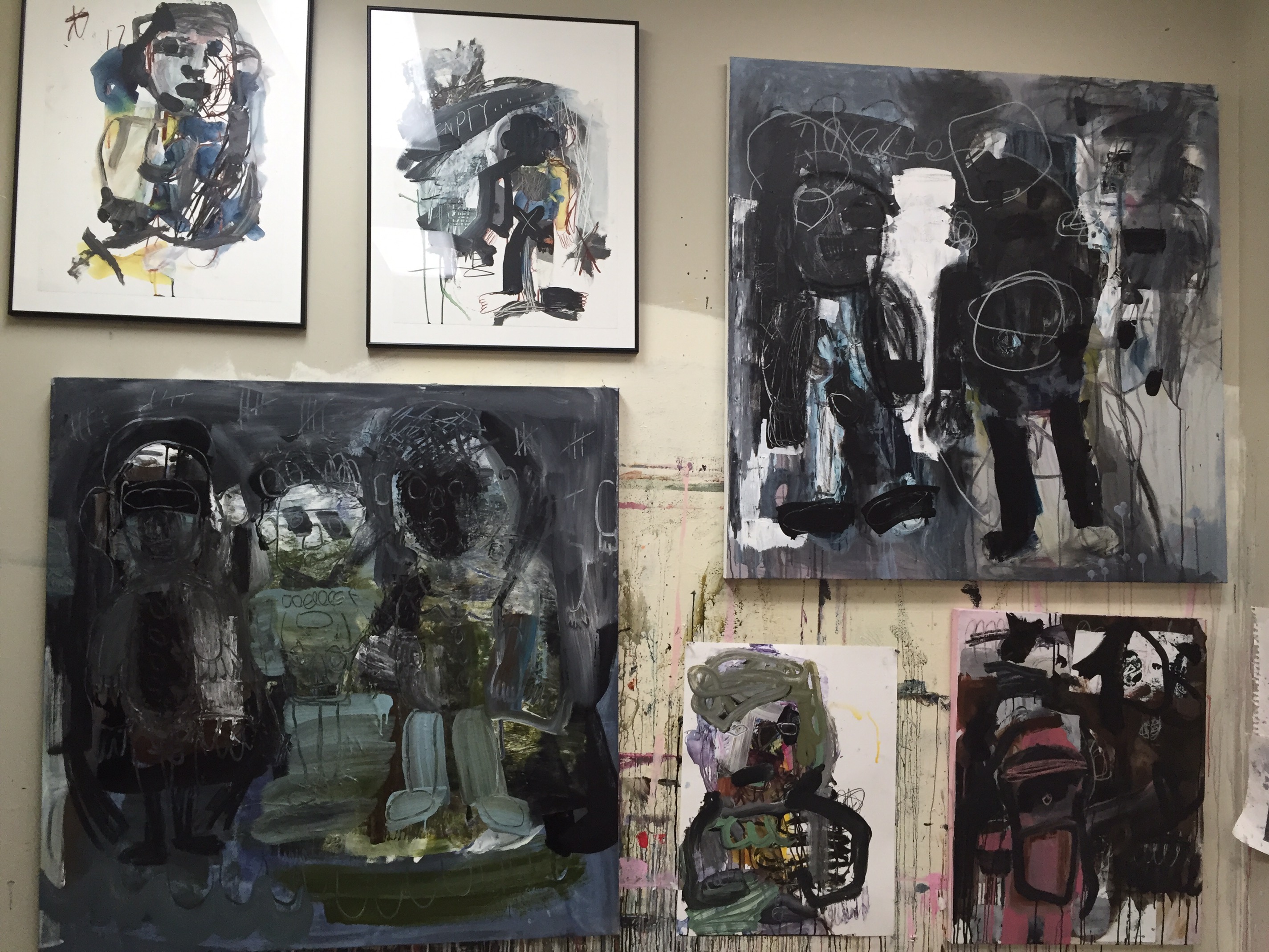 I started getting my work organized for Susan’s visit on Friday to help decide which works should go into Carl and my show. We had a meet on Monday at Carl’s studio. We went through our collabs and Carl’s solos. We have a great collection. Too much. Beautiful pieces. Carl and I fit in a session too, we painted on canvas for the first time together. Results amazing. It was a great session: magical, spontaneous, surprises emerged, a whole new series developed. We need to line up more shows! Yesterday as I worked in my studio I wondered what it would be like for Carl to work in my space? I’ve only worked in his space. Does that influence the outcome? I looked through the work done by GAP in Italy this year, wonderful pieces. I noticed the palette was much brighter, and wondered if that had to do with being in Italy. My studio is filled with psychological angst. I’m filled with psychological angst. When I work with Carl in his studio, somehow the angst subsides. Is that one of the beauties of collaboration? Of working in different environments? When I was working yesterday in my studio I saw the line and the mark making in a clearer way. I saw my work in a new way, that is a result from working collaboratively, I know this much. Time now to go, be mom, make the lunch, take Jack and Fiona to Early Start, go to sign class.