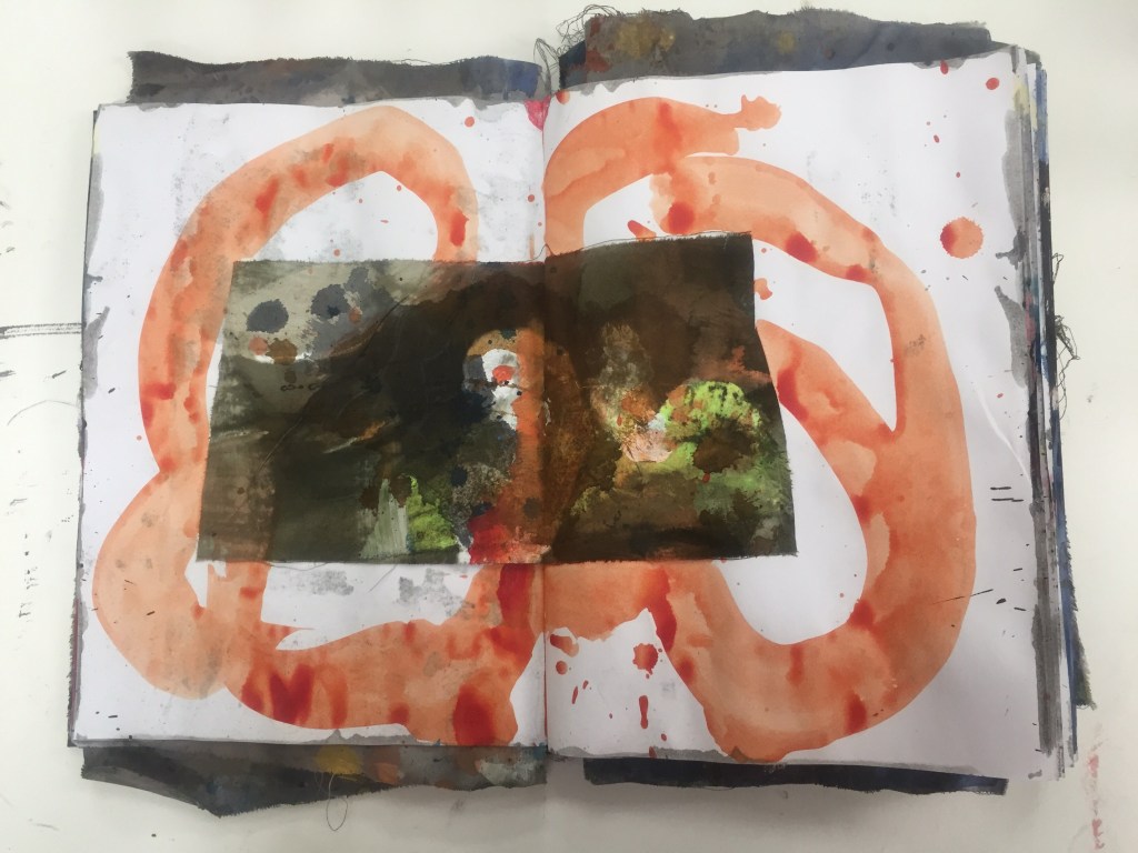 Coffee; 12:21 Friday afternoon. Cold November night made way for a sunny day. First day able to be in my studio in a while. I stand an empty apple juice container up; Mold has formed along one side. Dark green with bits of brown. I am protected from the cap. I forgot to put a cap on my black acrylic paint the last day the babies took a nap, when I came in my studio to work and saw on my “Never Trump” sign, “Never Give Up” imbedded in my message of Protest. I made it through yesterday: Parents meeting, (I was so grumpy I thought about not going, but it helped me so much). I told the facilitator, “I need to go back to therapy”. I took Jack and Fiona to the park. I let Jack eat Yogurt with his excavator, after he played with it in the sand box. I let Fiona smear yogurt on the ground then draw with her finger like I’ve been teaching her with various substances. I’ve been a great mom. I met a man this morning on the trail walking our dogs, I didn’t even wonder if he voted for Trump. I’ve concluded that it doesn’t matter anymore. With the men that Donald Trump has hired this week for Government jobs, it is crystal clear that this government philosophy, the power and masterminds behind it, has been in the making for years, forever, for as long as America has been America. There has been a strong movement towards peace, civil rights, and the environment, but that side hasn’t won yet. After every traumatic, life altering event I am forever changed. My innocence and optimism concerning the world we live in and the human race changes. The idea of life itself. Sitting in the back yard yesterday with Jack and Fiona, we noticed a green bag that used to house the jumpy house hanging on the fence full. “Is the Jumpy house in there?” asks Jack. “No, remember, the Jumpy house got a hole in it”. I take the bag down and open it revealing forgotten toys. Jack grabs the Fire Truck and the plastic bat. Fiona didn’t run to the toys, she sits and watches me explain things. She asks me questions and repeats what I say. I see a tick on Billys face. Fiona looks close as I explain, “Ticks burrow into the skin and suck blood. They get huge and fall off. They have diseases, I need to get Billy some medicine”. Fiona follows me to the closet, up the step ladder behind me. Telling me about the tick, about putting medicine on Billy. Jack asks me about the bat. He’s noticing the line from the mold. “It’s made in a factory, that’s the mold line” I tell Jack. I wonder if I should show him a picture of children working in a factory in China making plastic baseball bats. A plastic baseball bat that sits in the back yard un-used for most of the time. That will never disintegrate, that bat will be on this Earth for the rest of time. I walk back into the house and pass the children’s easel with a pad and scribbles and crayons, I feel myself coming back. Emerging into my space on Earth. My reality. Glug, Glug, Glug. I just poured myself a glass of red wine. It’s 12:48pm. I have a potential of three hours to work in my studio, if Jack and Fiona take their nap today. I miss sharing my naptime paintings on Facebook, but I am so relieved to be out of that atmosphere. I miss so many people on there too, seeing their up-dates, paintings, but I don’t miss the constant negativity, and look, it did us no good! We influence very few by posting the negative stuff Trump and his cronies do. I am going back to the drawing board. Back to before IPhones and Facebook. I have changed.