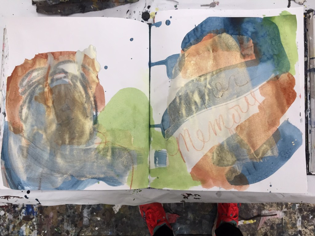 Everything’s All set up. Shelves stocked with cerulean Blue, Anthro blue, green gold, burnt sienna, and more wonderful colors and colors and colors. New colors. Past year been keeping colors basic. Neutrals. Now deep. Deep in it. Officially getting ready for Solo show in the fall. Am excited. Got the supplies. Got the preparatory work started. Almost seven months to dial it in. As well as publish my book of Nap Time writings and paintings. The problem with my book is I want to just keep writing instead of editing and curating. I have to match the photos of my naptime paintings with the corresponding naptime writing that spans two years. Maybe it should be split up year two and year three. That’s a start at least. It feels like a daunting project! I had a wonderful day painting today. I made a supply run this morning, that is a help. I’ve been having vivid, intense dreams and feeling a sense of needing to put self-preservation first. Don’t take any chances, I think. I grab a long stick on the ground as I’m hiking this morning; A trail up high overlooking San Rafael. Its my first time this far up. It’s a spot the homeless camp out on. I walk across someone’s spot. A round circle of grass is flat. The sun is just peering over the eucalyptus trees. There’s a small, tidy bag of garbage. I see a cigarette box. There was a bad fire on the hillside a few years back, during the drought. “It’s the homeless camps” everyone shouted. I would set up camp here. If I were homeless. With some mean dogs to protect me. Billy’s getting old. Her leg isn’t quite healed. She’s feeling her recent injury. Her days. That’s why I Grab this stick. In my dream, I was scared. I ran through tall grass. I ran from a thief. I was scared. This would be a convenient spot for rape, I think. I remember how vulnerable I used to be when I was on the street as a young runaway. I had to line up with guys who would protect me. Even if I had to have sex with them to keep that protection. It was the lesser of two terribles. In my dream I was a teenager again. Sitting in the back of a pickup truck. Trying to figure how to stay alive. I brushed it out of my memory. Buried it down deep like they’re someone else’s stories. I picked up the stick this morning because the alternative, in the event that strange, somewhat in trusty worthy looking man was to come at me. I would have to run through the brambles in the wrong kind of pants, or strike him, hard. The other night I dreamt I was trying to protect myself with a garden tool but I couldn’t swing hard enough. The noise of the fan brings me back into my studio. I only have fifteen minutes left of my break. Tomorrow I am staying the night in the city. I’m going to the MOMA to see the Diebenkorn and Matisse show. It’s going to be the best night ever. I’m going to a Brazilian Steak house. I’m going to eat steak and drink wine.