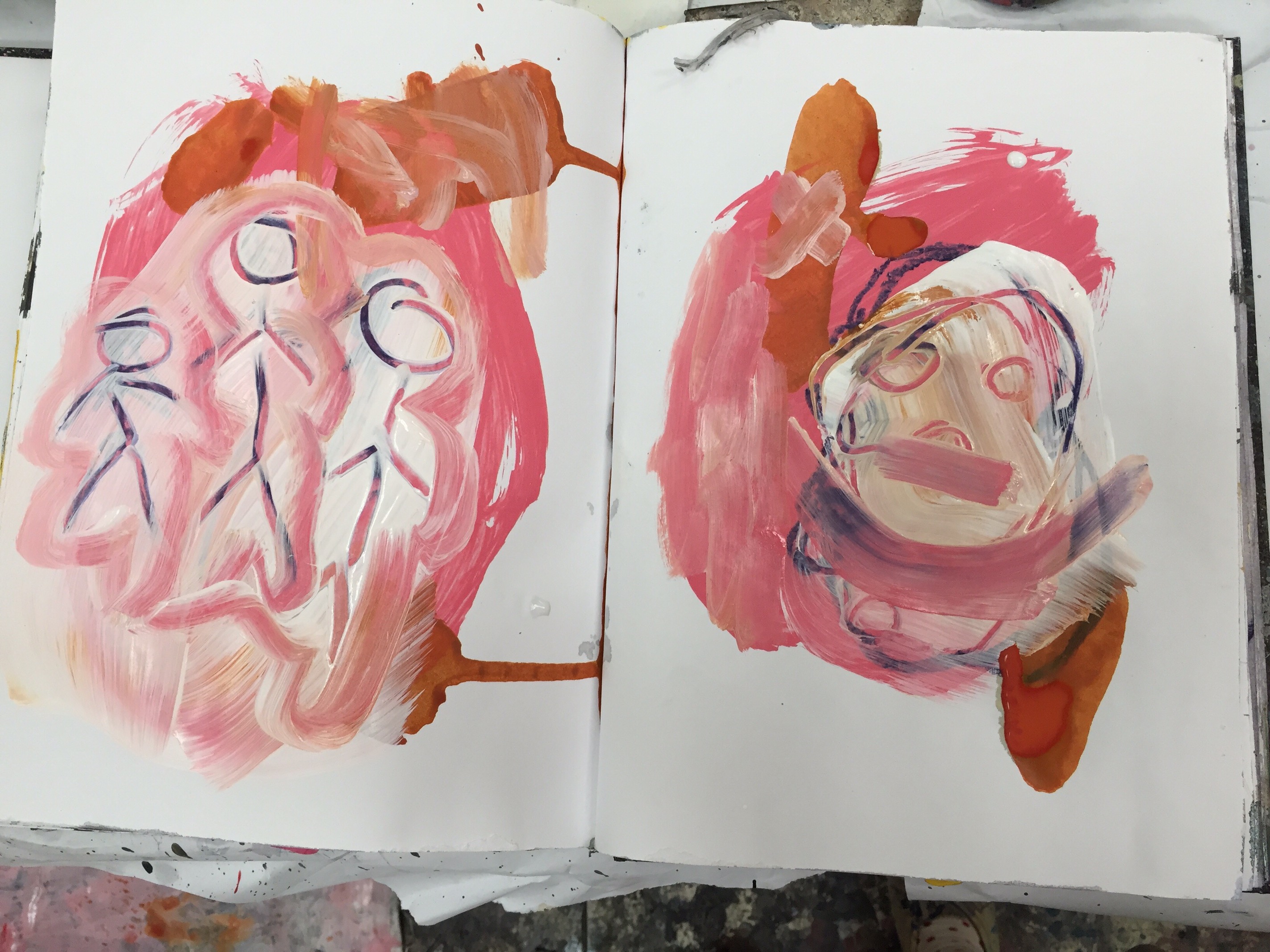 The lifespan of Plantanus Occidentalis, the American Sycamore tree is more than 200 years. That tree will be there long after we are gone. I think about that, our short time here. I first started back in my studio after the babies were six months old, it felt like a long time had passed. I started getting very depressed. At first, I tried to get large chunks of time in my studio, like I was used to from my life before becoming a parent. It was difficult to get much time, I was frustrated. It took me several months to develop a new technique that worked. I learned that even if I only had an hour or thirty minutes it was worth it. I started working on my naptime notebooks and paintings. I focused on spontaneity. I left my critical mind out of the studio. I’ve grown as an artist this way, with these restrictions. I shed my leaves and grew back new ones, use what time I do have instead of thinking I don’t have enough time, inspired and grounded by the sycamore tree. Memories are imbedded in that tree, it is a keeper of the past and a beacon of years to come.