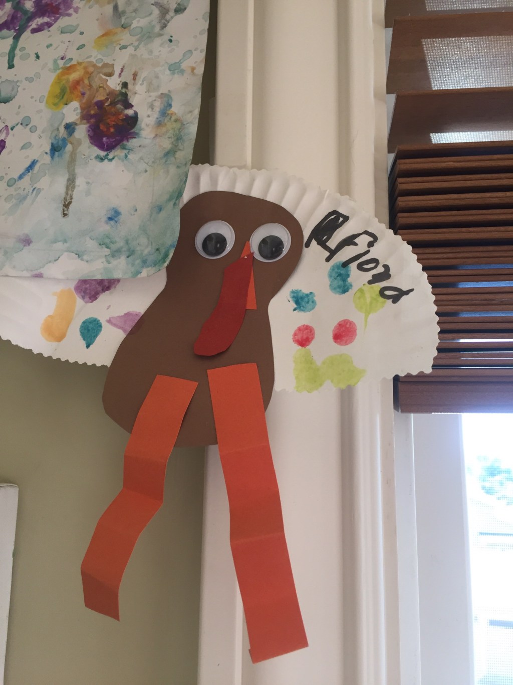 The space in between. In between two paper turkeys that hang on the wall from over a year ago. Above the kitchen table, many meals shared. The crows cawing loud today. What are you cawing about crow? September heat rot summer figs. Dried dark purple corpses, tears down the middle, reminiscence of pink and yellow juicy insides. The leaves on the fig tree so large now, they canopy the sand box, crisp dried fig leaves crunch under my feet. I walk to my green chair I put in the corner at the beginning of summer. I sit down, it’s cool here, the coolest place around. I wonder if I should put away the trucks for the winter? Will they deteriorate if I leave them out in the rain and wind? Should I put up new paper turkeys? These are baby paper turkeys, just dollops of paint, glue, brown and orange construction paper, and googly eyes. Jack and Fiona are three and a half now. Their Thanksgiving decorations this year will be more sophisticated. A few little baby paintings are still taped on the wall. Fiona is drawing “The Green Faced Man” now. Jack rode a scooter down the sidewalk this morning to school and stopped at all the driveways. Time that passes between is a growing time, a learning time. It’s hard to let it go, of the past three years, the baby phase. It slipped through my hands like sand in the sand box. The narrative was set, predetermined. The baby is born dependent on the caregivers, the child learns to be interdependent and become caregivers themselves. I never think about the time they spend away, in their communities without me. I think of them as they are with me. Fiona started helping a younger child we were with yesterday in a very mature way. I can only imagine she is a caring person on the outside. Jack likes talking to everyone. He looks older than he is and speaks clearly. He looks at people’s eyes when having a conversation. What’s happened in between the spaces here- two babies have grown into confident, individual children. Maybe it’s time for new paper turkeys.