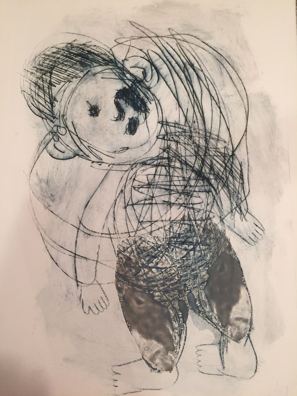 I can’t wait to get to the studio! I’m almost there, tomorrow! I can feel myself standing in front of a piece of blank paper, mixed up some paint, paint brush and a drawing tool in my hands, music on, hours ahead of me, an infinity of space for creativity. Free to begin a new series of work for a show next year, a gallery space, a book. Nothing is standing in my way. I need patience and a new attitude for the days in between my work days. It’s hard, with the smell of stinky, fish, pots and pans staring at me, a dishwasher full of clean dishes and a sink full of dirty dishes, walls with drawing on them, toys scattered all over the floor. I can not pick up and clean everything all the time. What did I do before kids? What was my home like? How clean was it then when I thought it was dirty? Was it always clean, picked up? Was that stress I did not have? As Jack and Fiona get older, now almost four years old, the messes appear faster, it’s like Jack and Fiona need to live in chaos. Furniture that we’ve had for nine years, was in great condition, now in tatters. Chairs turned over, turned into forts. Cabinet doors broken, floors and doors warped from water damage in the bathroom when they played in the sinks with the stoppers in, they were supposed to be taking their naps. Dark mornings I am woke, “Mommy, my bed it wet”. I just want a few more minutes to lay under warm blankets. Did I ever think of any of this when I was going through infertility treatments? I thought I could keep my home organized when I had kids, I thought I could keep it clean. What I went through to have kids, the difficulty in raising kids, the way it takes over your whole existence, except those magical moments in my studio, is it worth it? Is it worth it for the sweet moments of pure joy, living life through a child’s eyes, learning about relationships and love like I never have before. Holding their sweet little hands, kissing them goodnight. Learning things about myself I could have never learned without becoming a mother. It is all worth it, to me. The house is here to be used, to be lived in. It’s not a museum. It doesn’t matter, it just stinks sometimes, like last nights fish dinner.