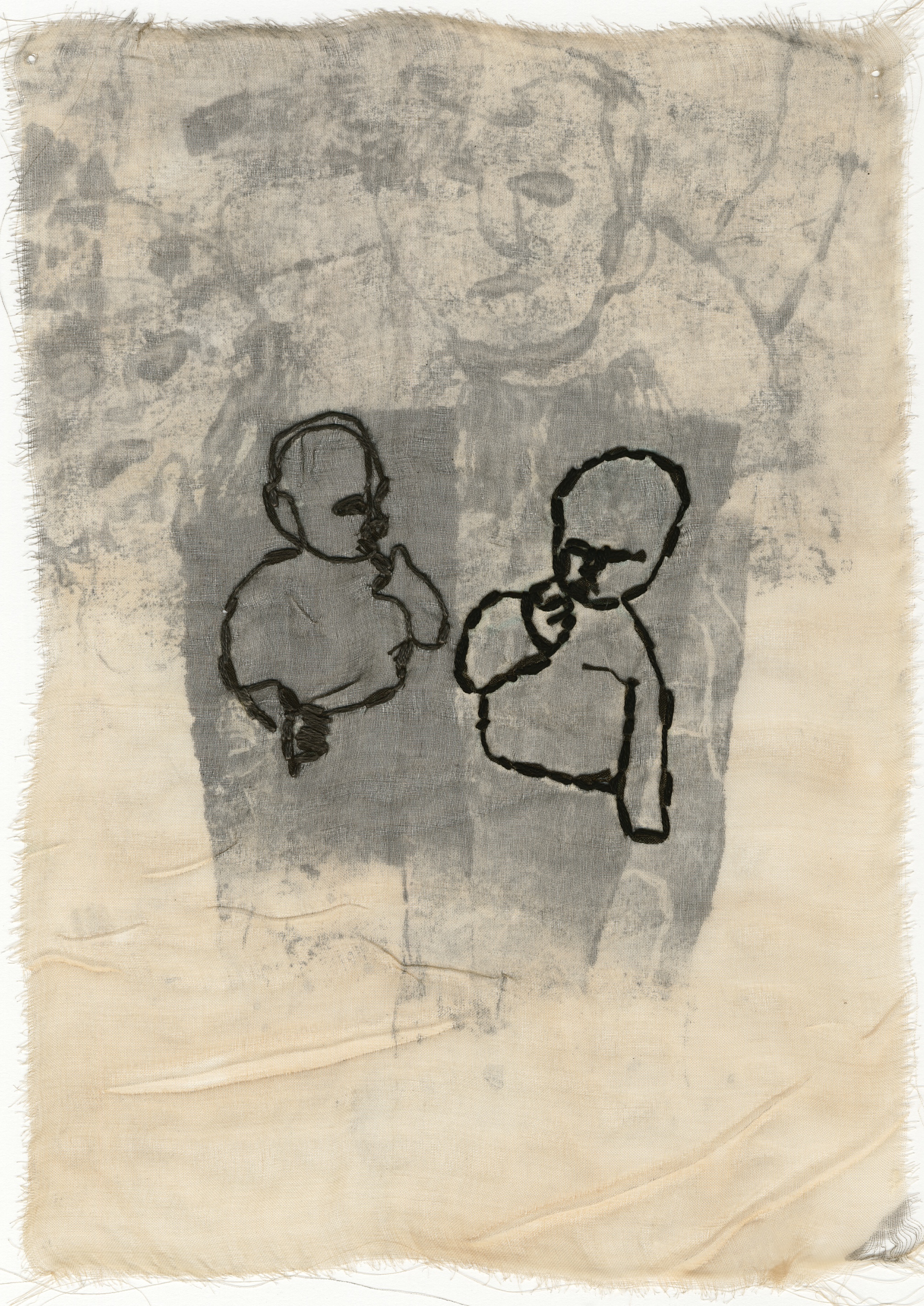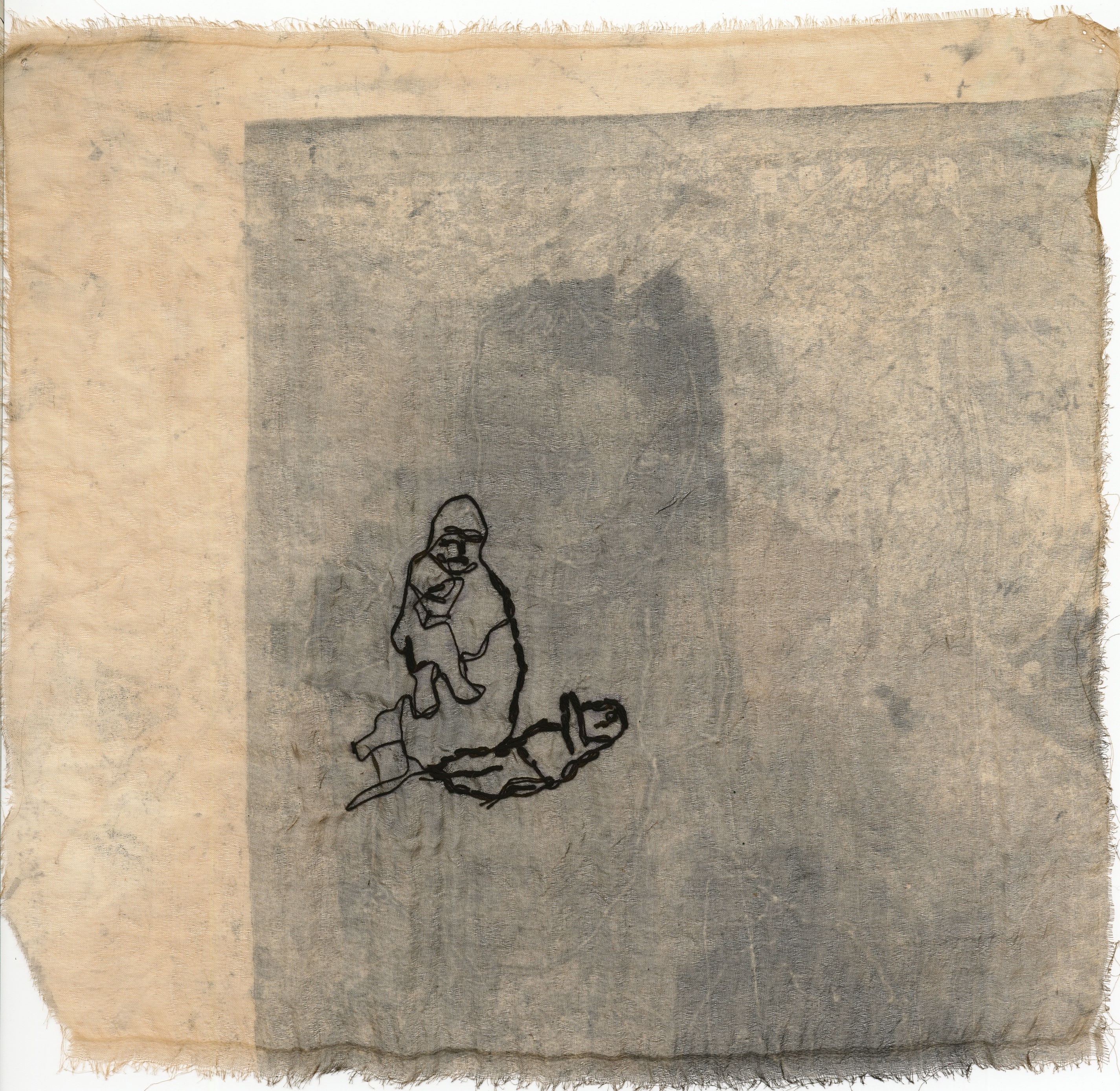 “Misogynistic Oppression”, that’s what I wrote on my white terry cloth arm bands with a black sharpie yesterday. It was right before we started to kick and punch the giant torso of clay Jill set up for us. This was the second to last meeting of our Parent Artist Residency, Being Human. This week’s project was kickboxing rage, gloves into clay, shoe prints, scratches, pushes and pulls. The clay our receiver and our transformer.