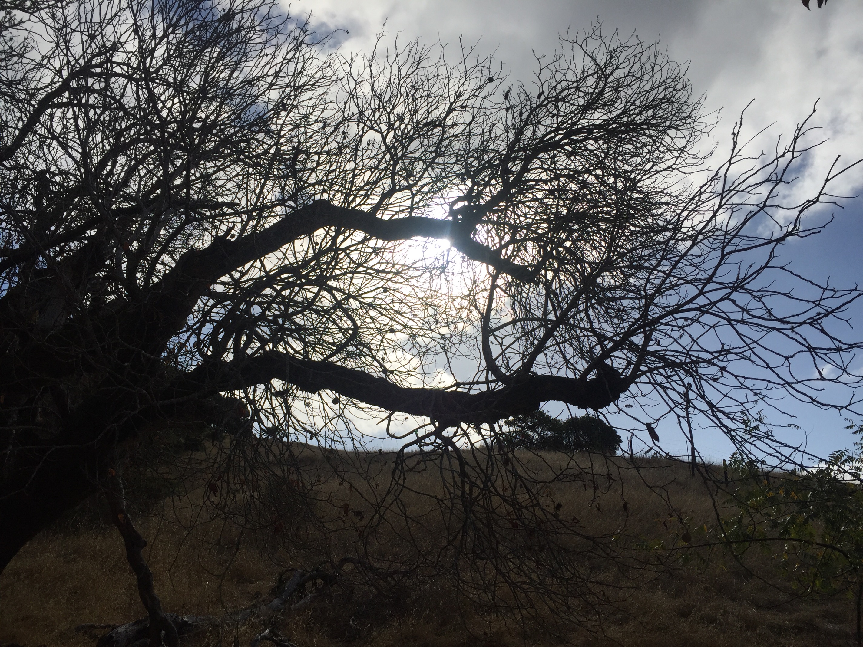 Billy and I head out on our hike, I say to myself , “this totally sucks, the day I decide to do this I have terrible allergies” I’m finding it hard to relax, be present. Then I see these oak branches set against the morning sky