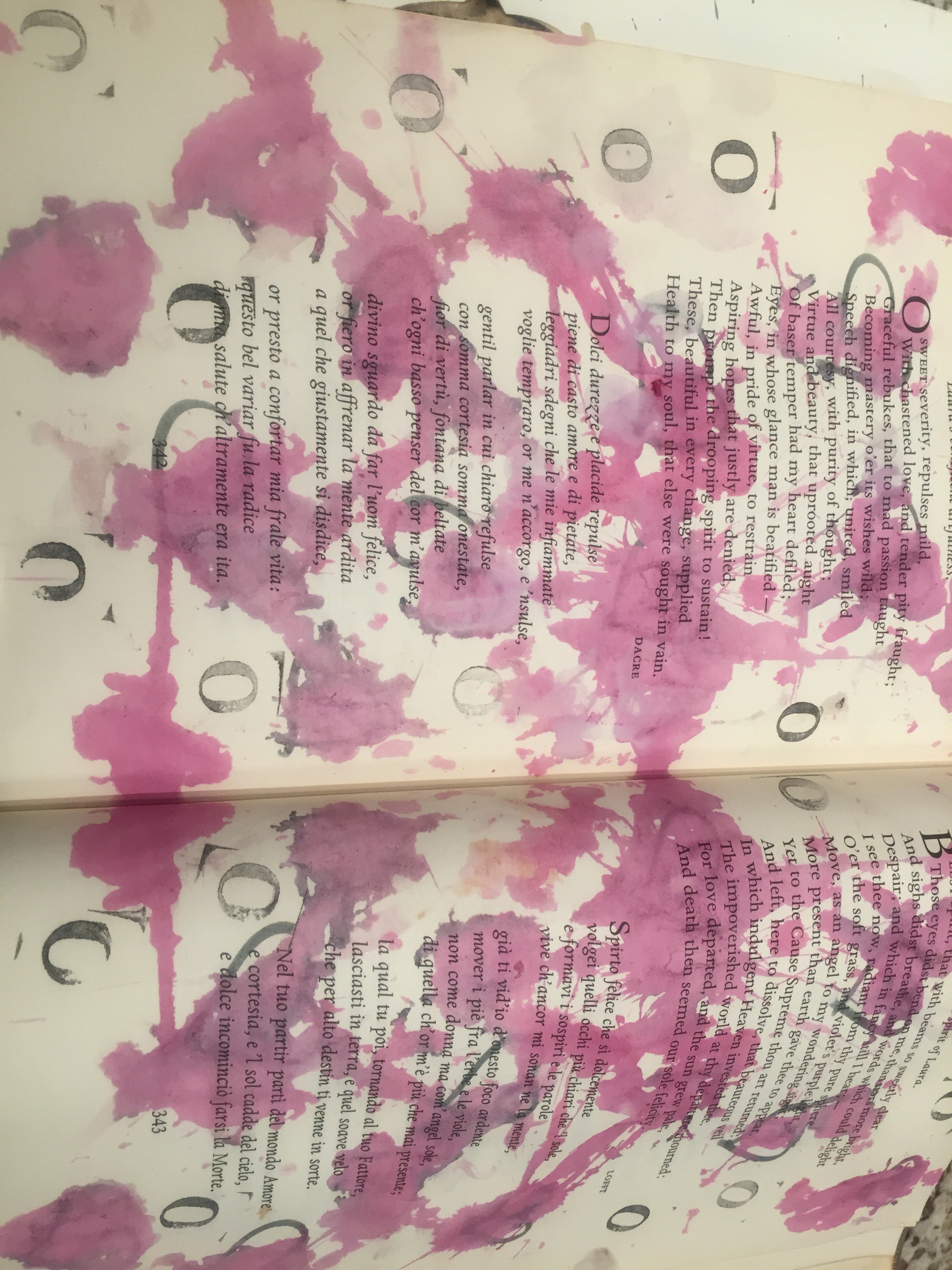 We were sucking seeds out of a pomegranate when I had to see what the stain of juice would look like on the pages.