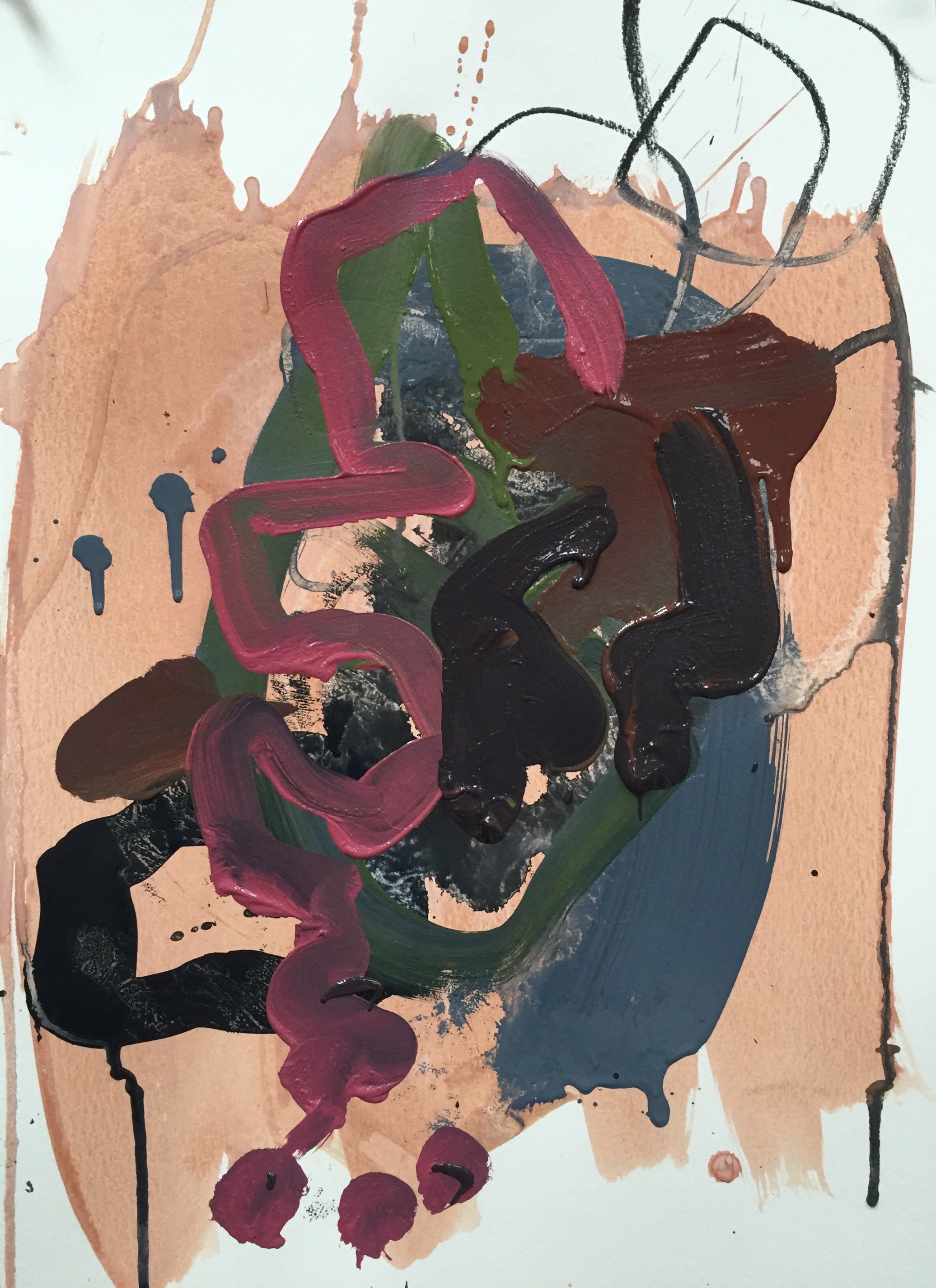 I’m in my studio during naptime, but it’s not naptime because I hear Jack doing all kinds of stuff, one of which is calling “ona ona ona” because he can hear Fiona going back and forth between singing the goodbye song and crying “mama mama”. I needed to get into my studio and lay down some marks so I just decided to leave them be, hope that they fall asleep eventually, hope they don’t have a poop, and get them out after it’s been two hours.