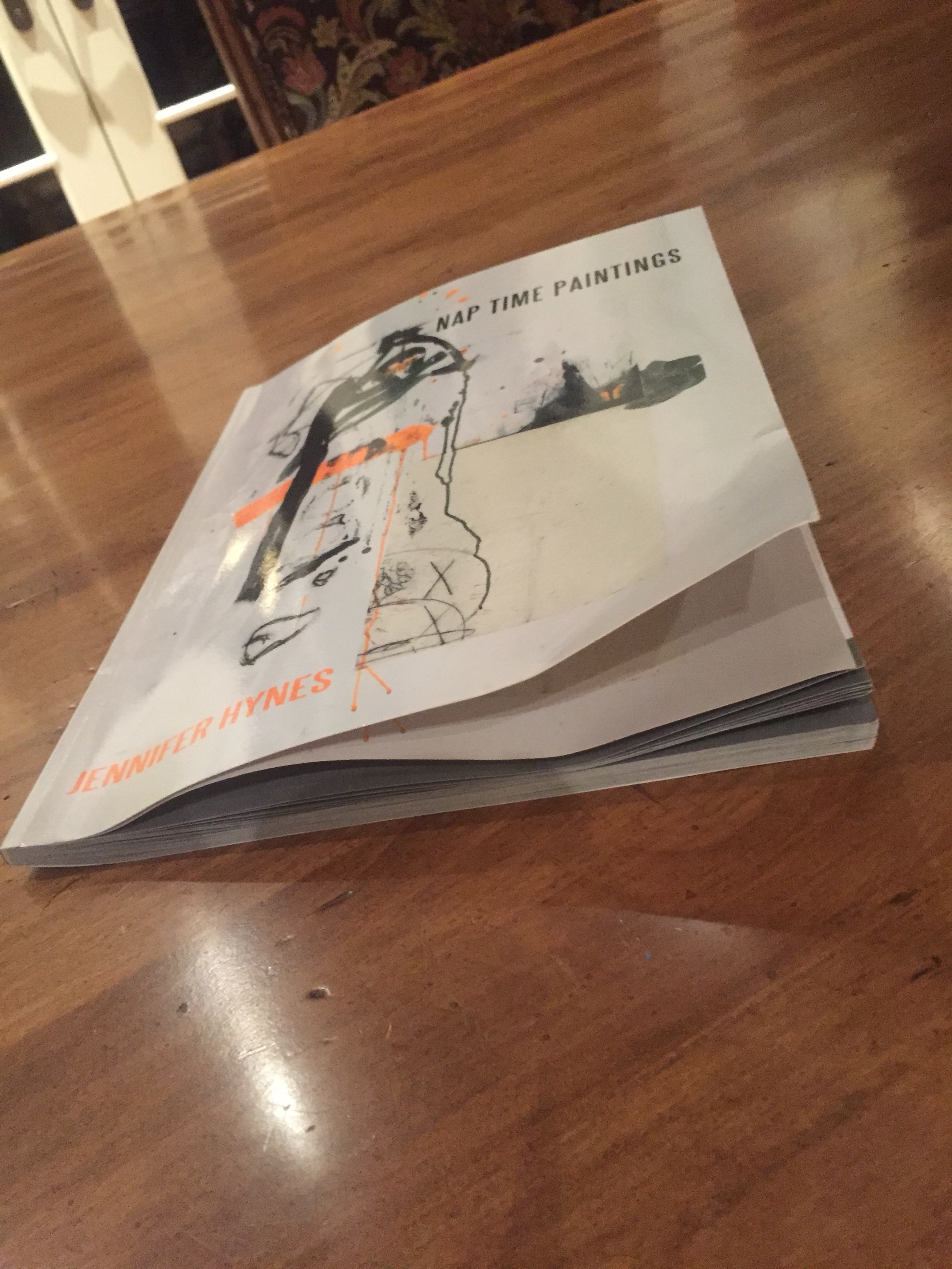 I recieved my paperback copy of my book , Nap Time Paintings yesterday. I am totally dissapointed. It looks like a cheap overpriced magazine. It was marketed to me as a coffee table book. I shouldn’t have shared it on Face Book and Word Press before I recieved my copy, I was just so excited. This is what it looks like two days at home: