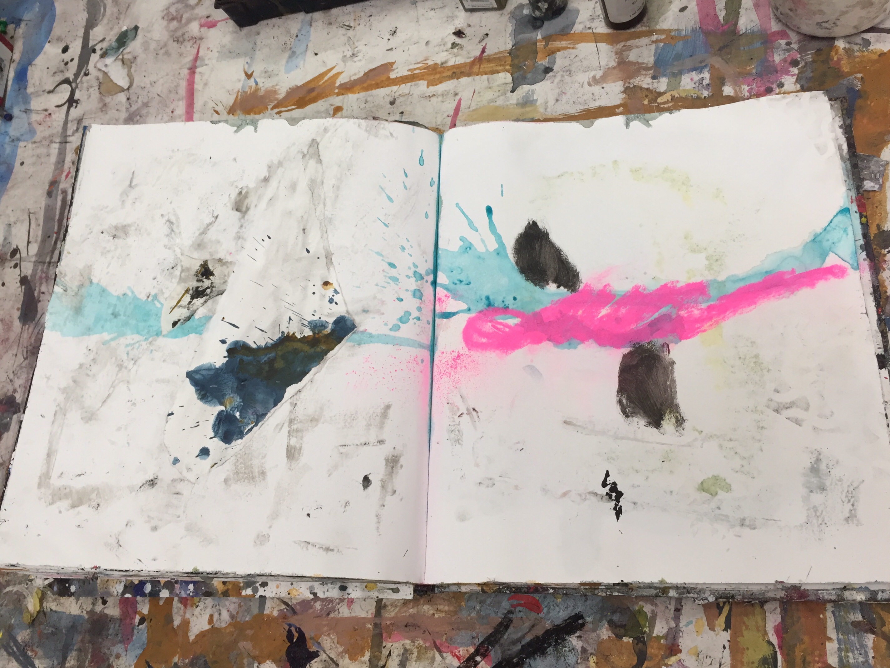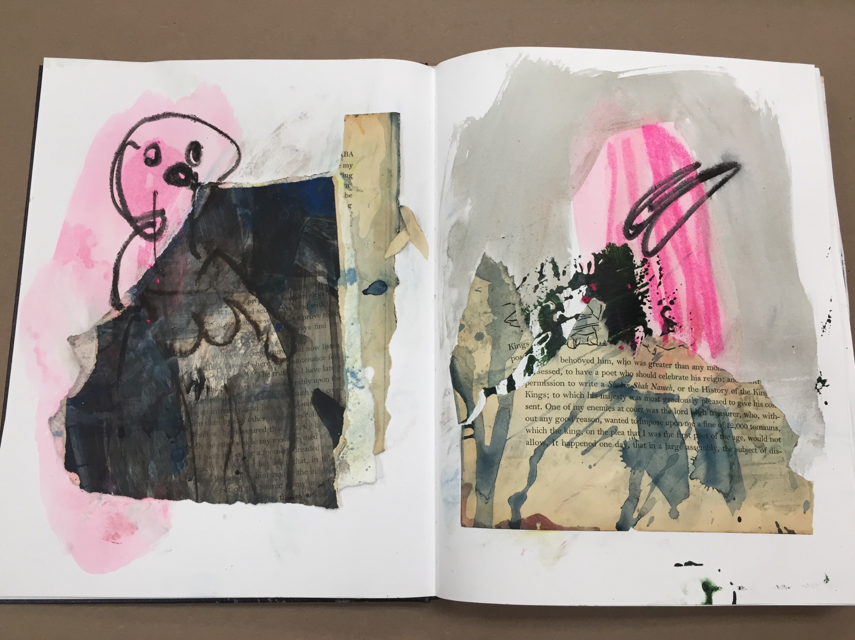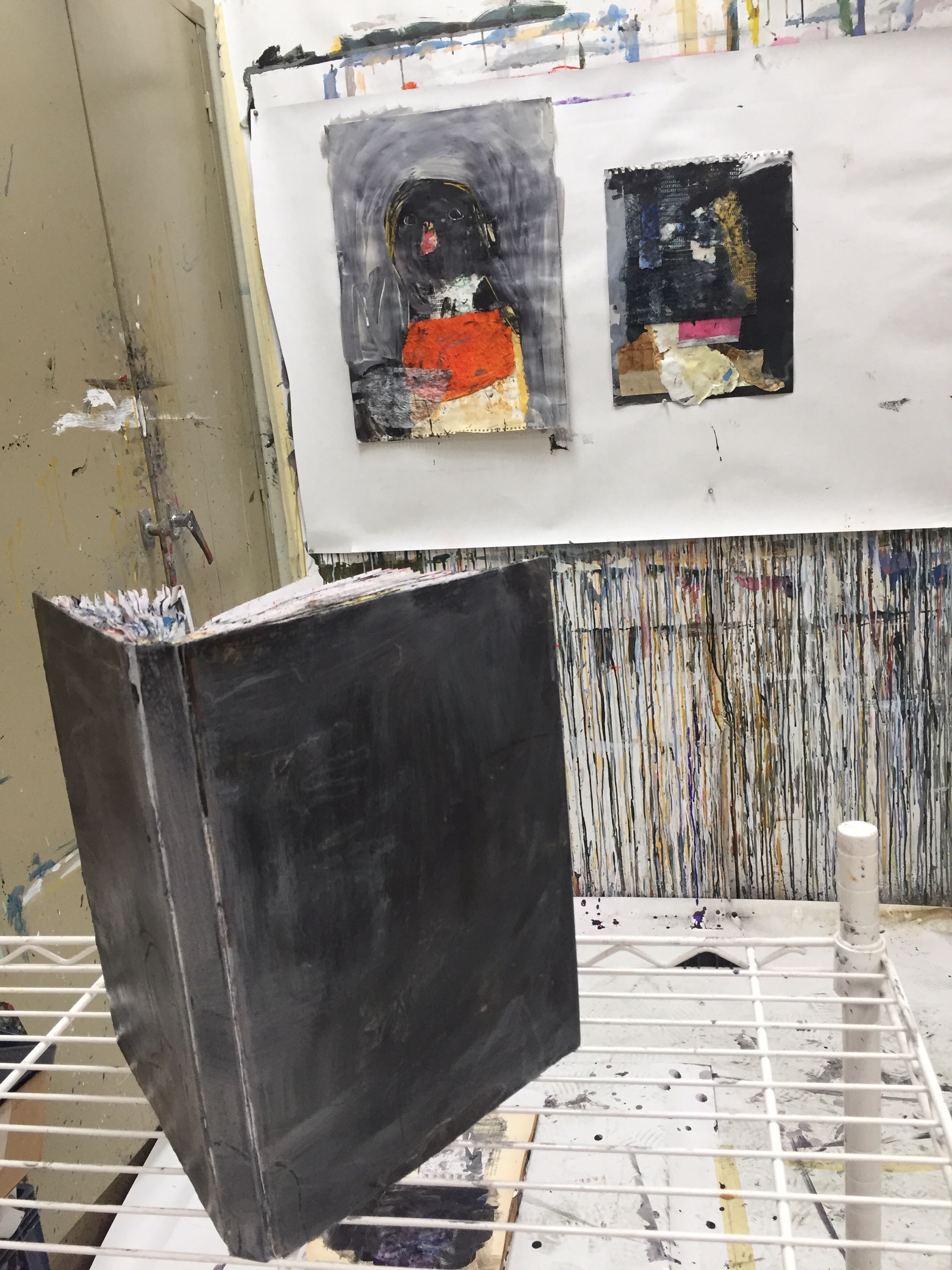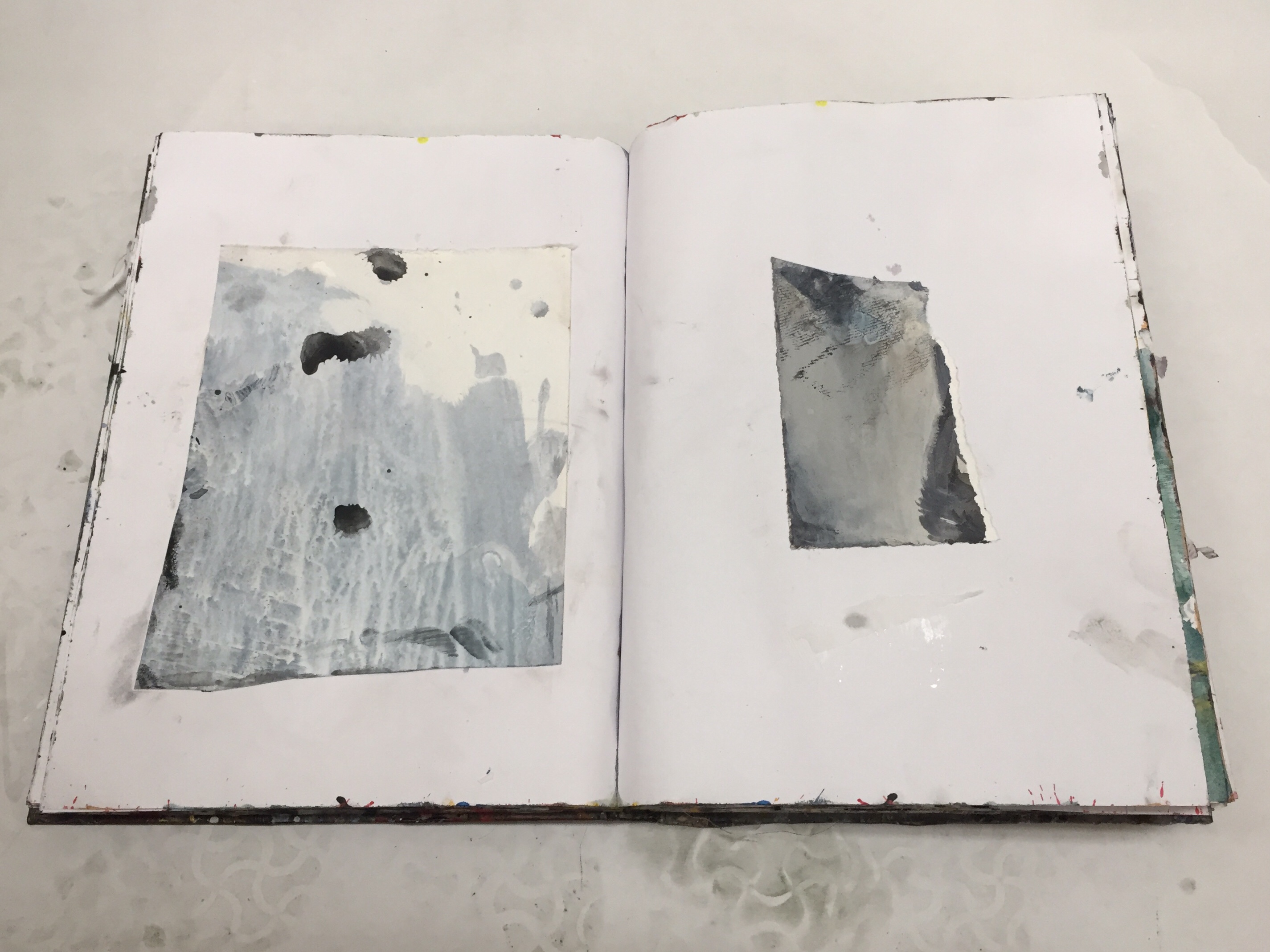 Notebooks and work on paper, collage and water based paint