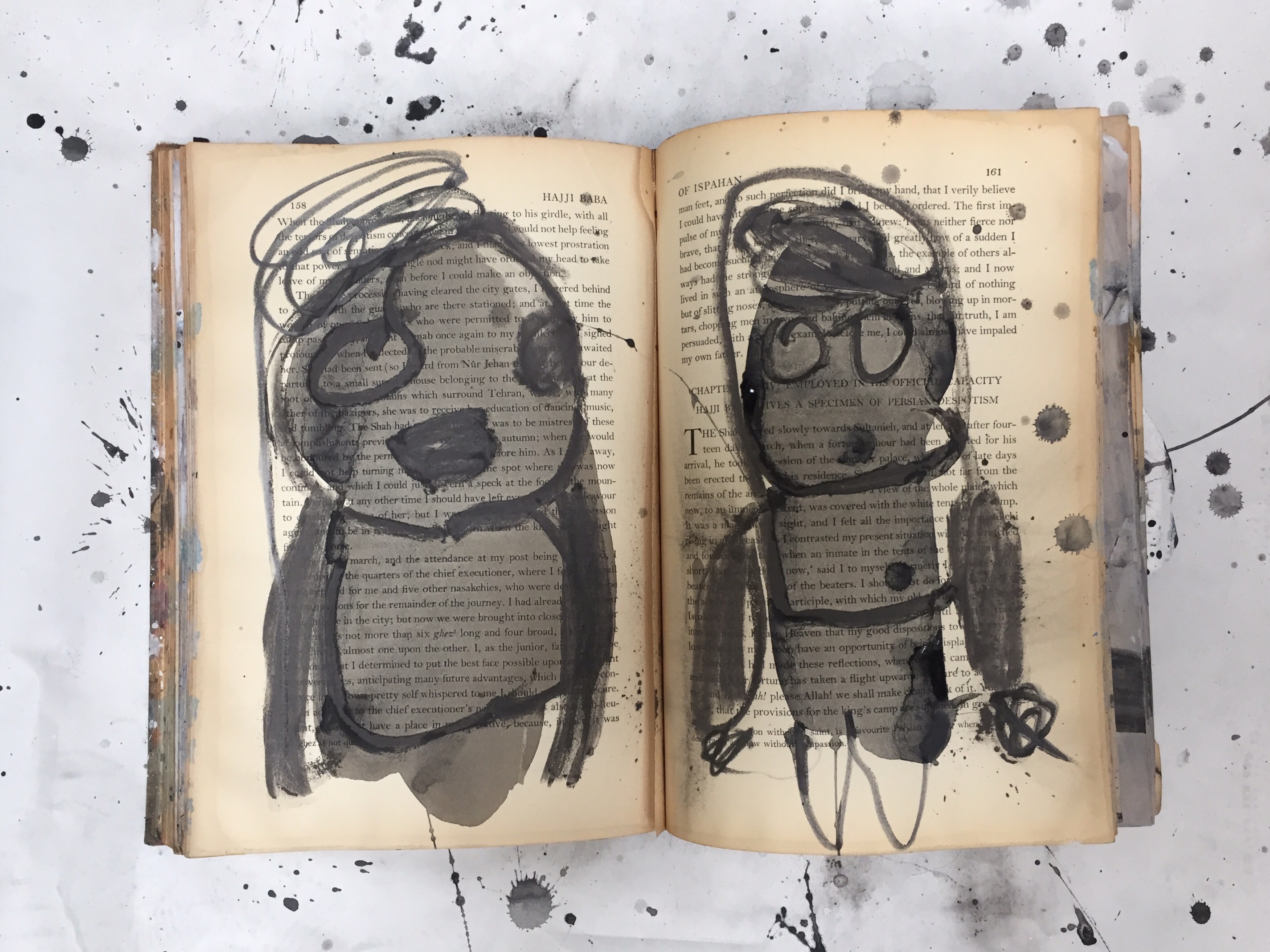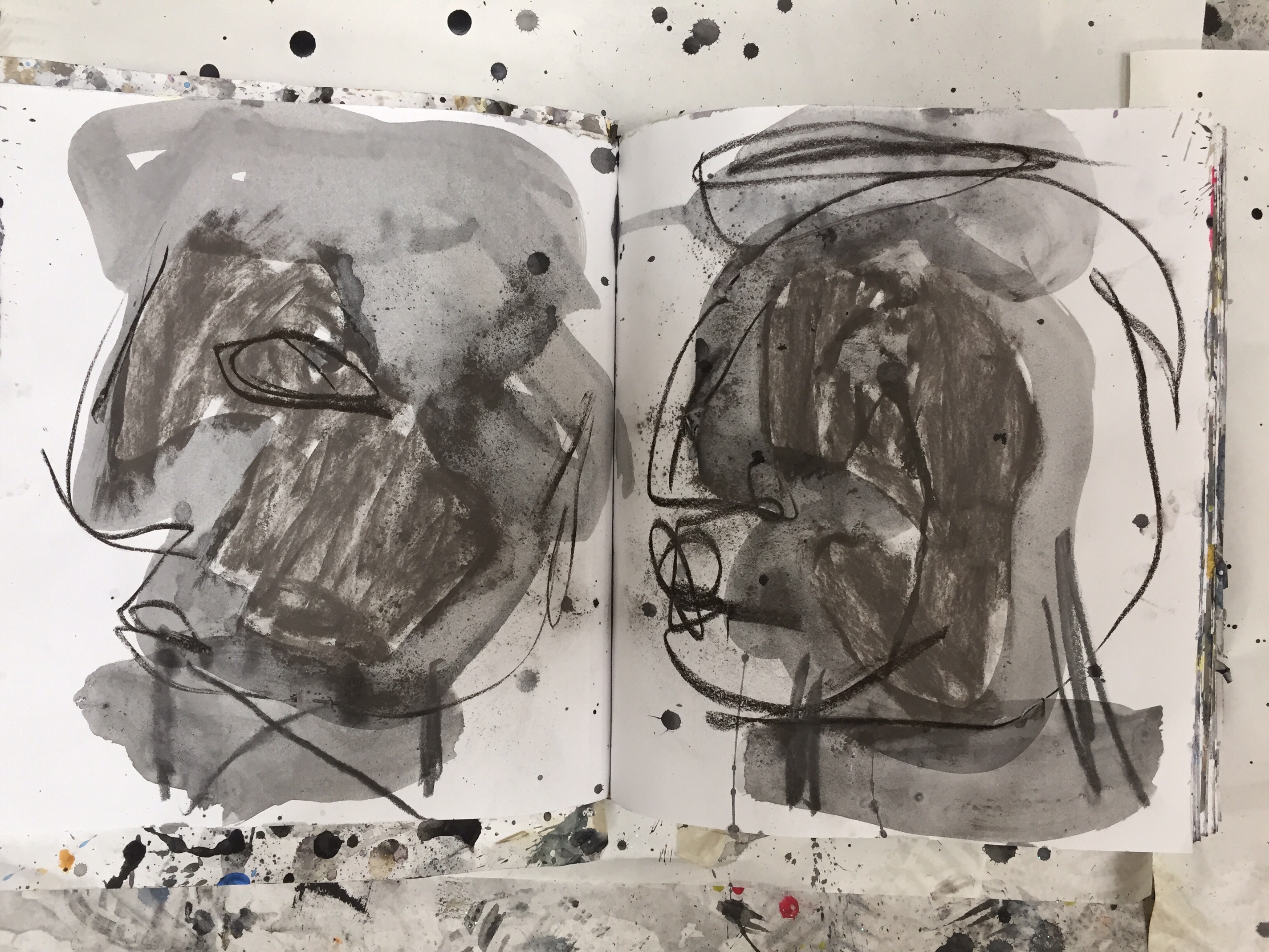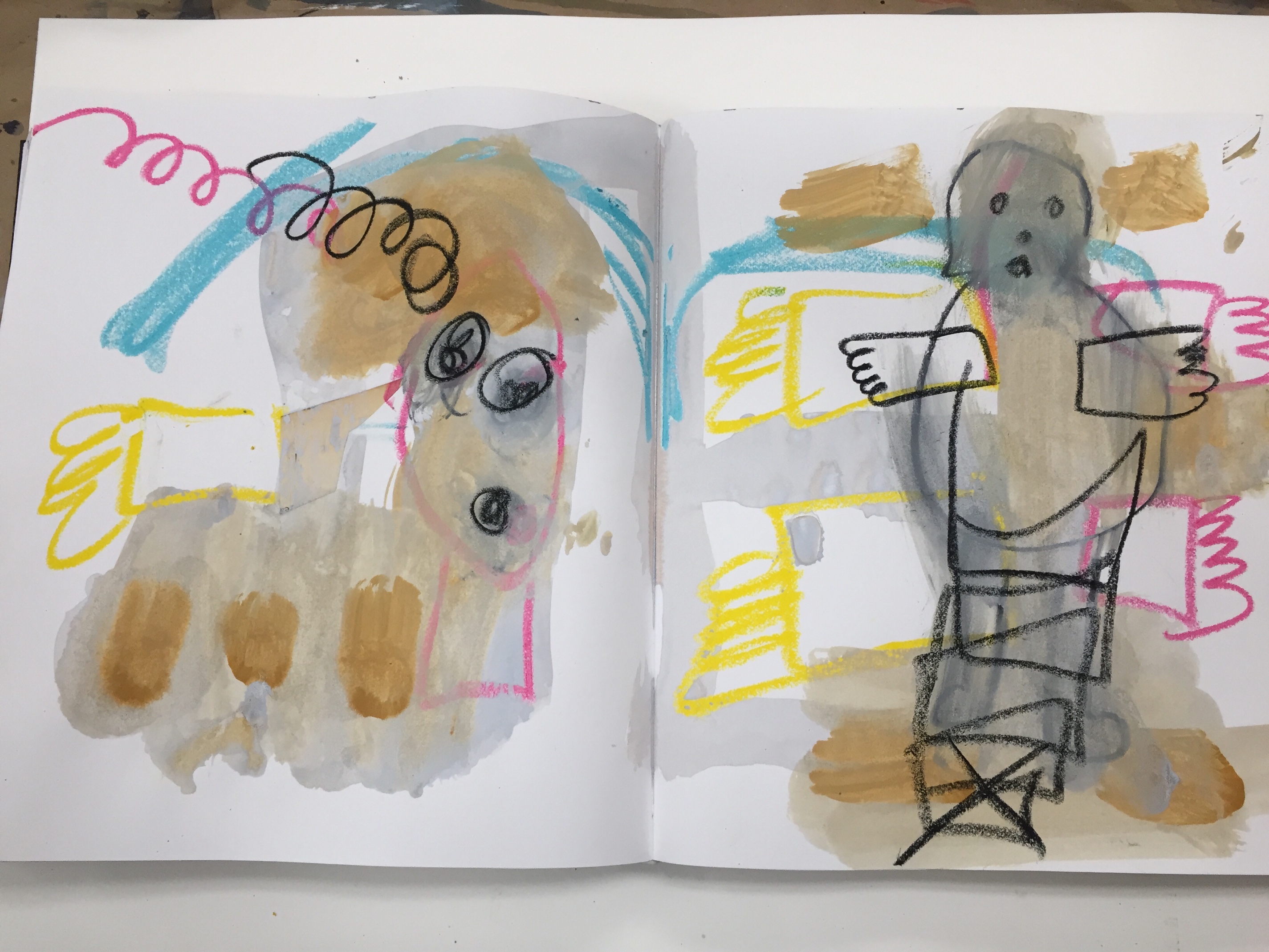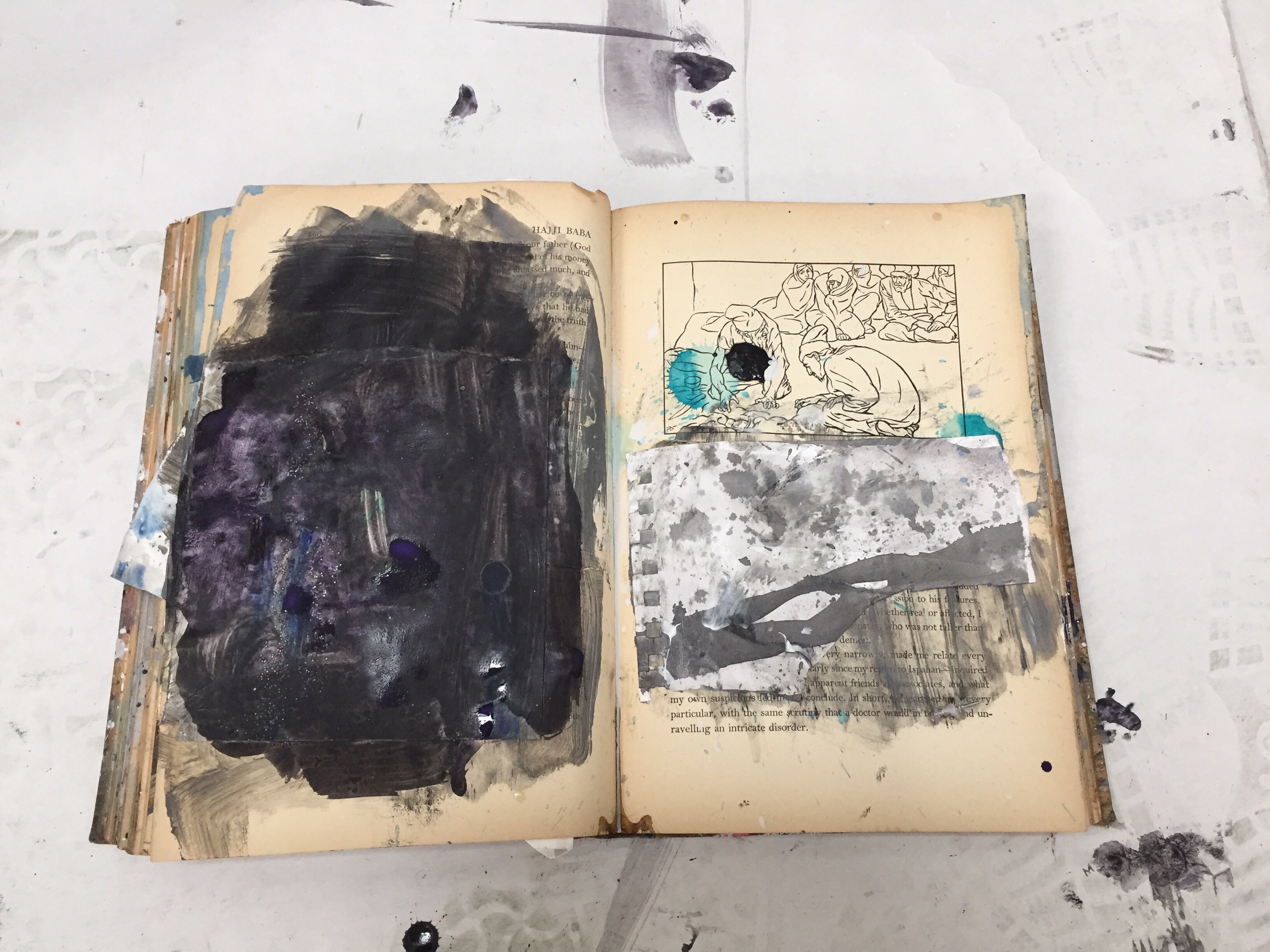 Notebooks and work on paper, collage and water based paint