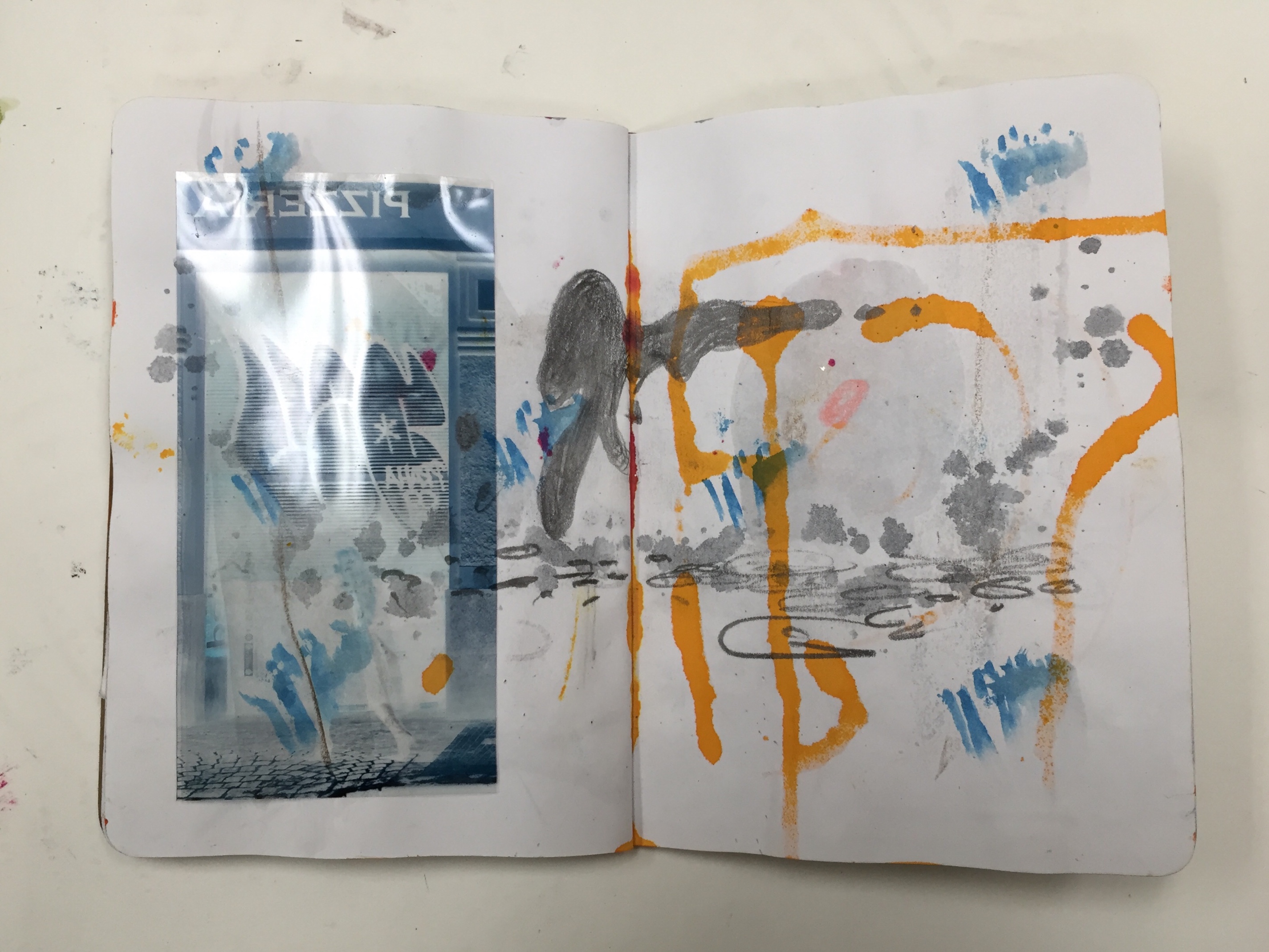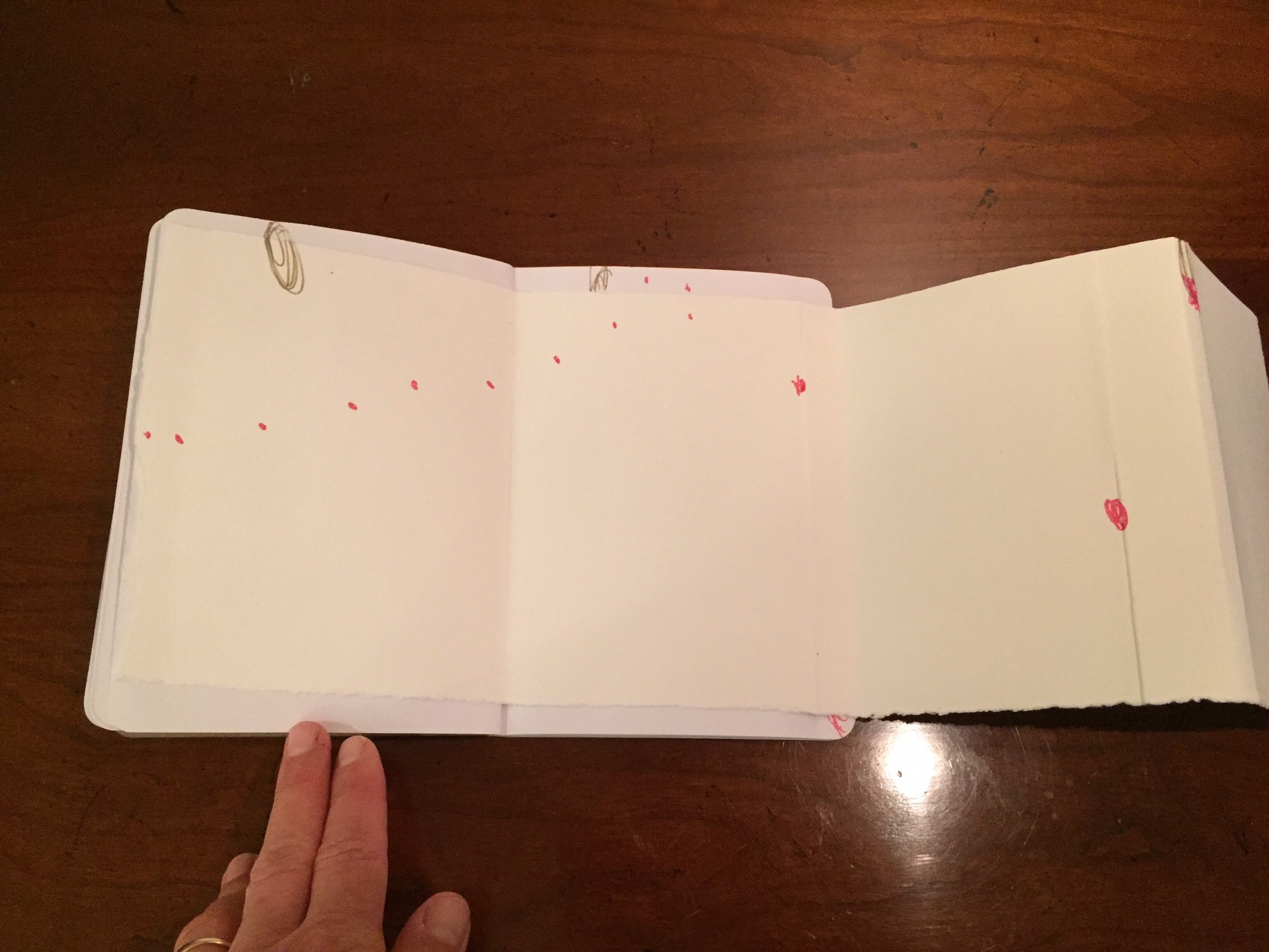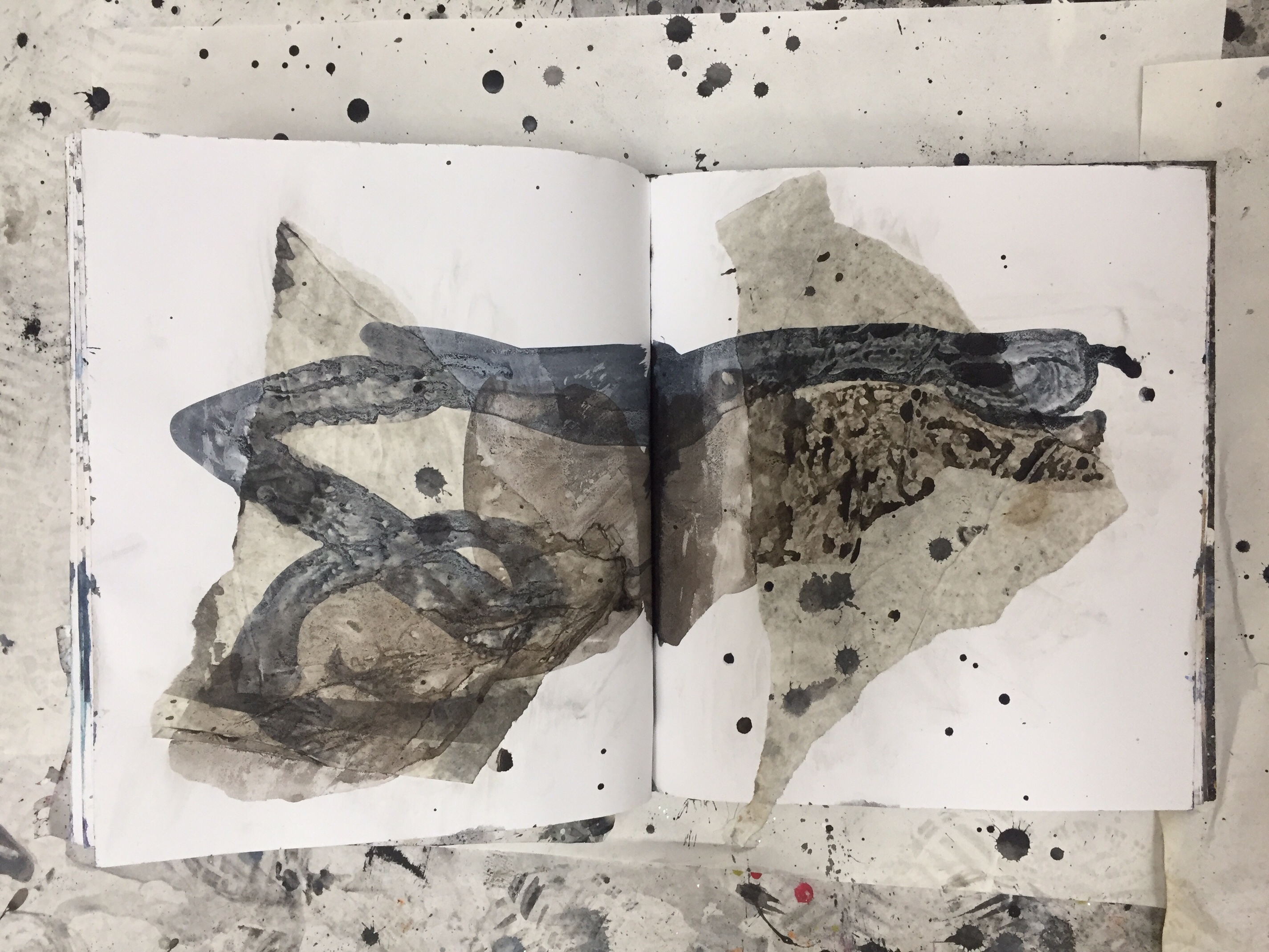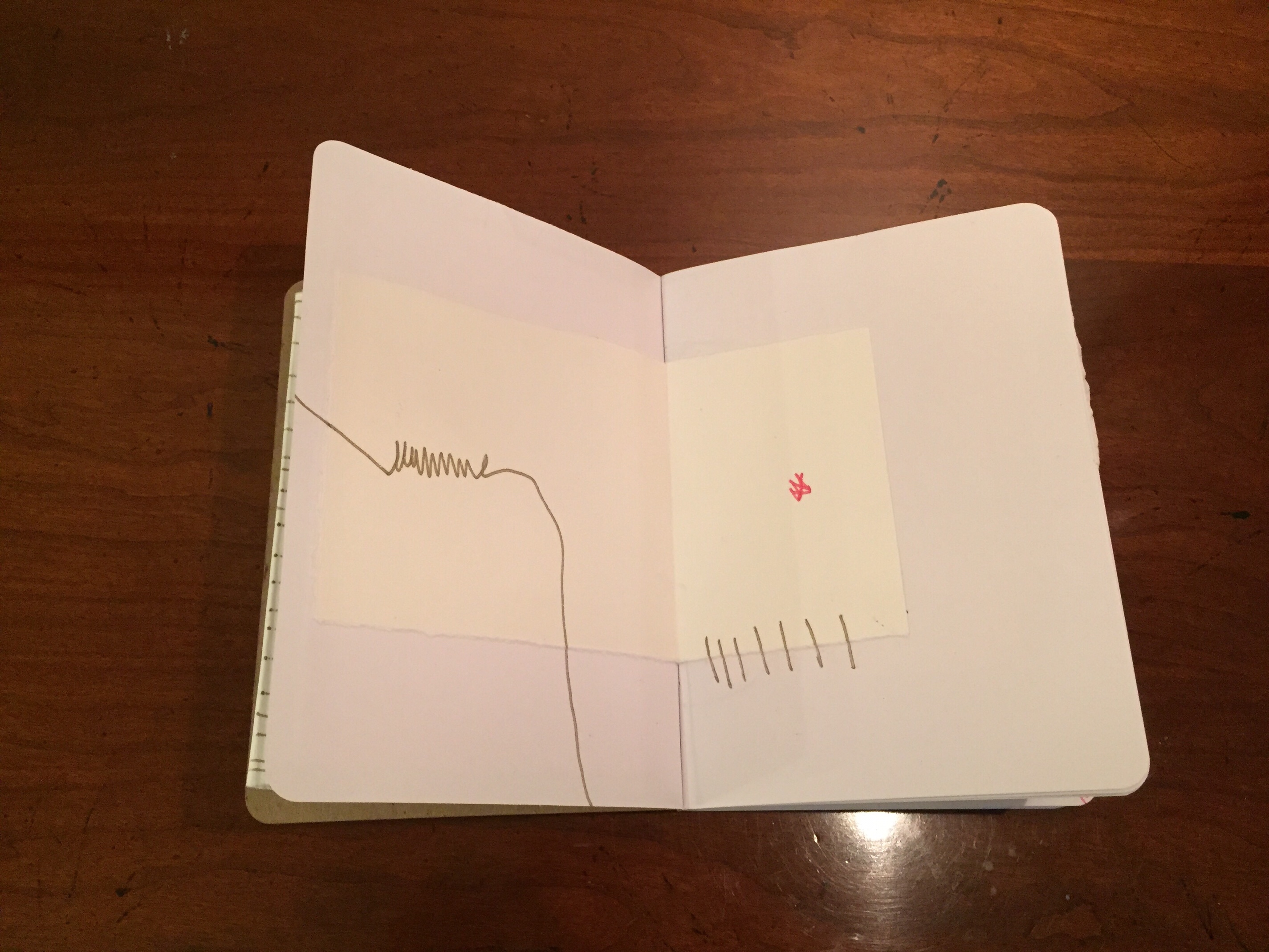 GAP, (The Global Art Project) is a group of artists living in many countries around the world. We work on collaborative projects by mailing “FRAGS” (scraps of old work ripped up, studio floor finds, collections of tickets, maps, ect.) to each other. We then work on collage and mixed media in our own studios. GAP also organizes yearly residencies where members get to meet face to face and work together. GAP has in the past and is currently working on several collaborative sketchbooks, we call our collection of sketchbooks “DISLOCATIONS”. When I saw the BROOKLYN LIBRARY SKETCHBOOK PROJECT, I thought it was perfect for GAP! I initiated and curated the project, along with Carl Heyward, the founder of GAP. I originally ordered one sketchbook, but after I received so much interest in participation from fellow GAP members and I saw how little the sketchbook was I ordered a second one. The first Sketchbook I named Volume One. That traveled the United States and was originally SOLO work. But when the book was finished and returned to me it had grown very thick. I had to make some executive decisions and edit some pages. I used “FRAGS” from the edited pages and in the end almost every page is a collaboration. Volume Two went to Europe first. Switzerland, then Belgium, Spain, and made several stops in the U.S. before it was returned to me. Again, I had to edit and rework the book. It had grown too thick again! I had so much trouble with this sketchbook that in the end it only has four pages. I ordered a third book, Volume Three. This final volume traveled to Senegal in January for a GAP residency. Participants at the residency added to the sketchbook over the course of their stay in Senegal. Carl Heyward returned the last Sketchbook to me when he returned from Senegal and fortunately Volume Three did not need to be edited or re-worked!