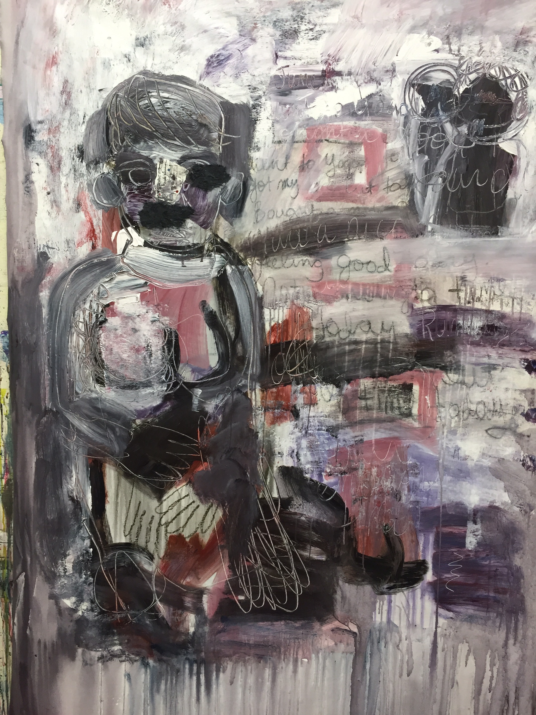 I was so glad when I looked at the clock and it was 5:18 am, I thought for sure it was going to say 3am or 4am. I got 6 hours of sleep, not ideal but not horrible. I’ve been in a state of mania; my studio is covered from wall to wall with work in progress, I can’t stop painting. I have moments of panic about how much money I’ve spent on publishing my book, Nap Time Paintings; Motherhood through the Eyes of an Artist. My savings is gone and I still need to frame works for my show. But the biggest driver in my mania is to make. I have this idea in my mind of what I want my paintings to be, particularly my grouping. I keep going too far on 90% of them. I pass through the sweet spots. I should leave them I say to myself. But then I push the envelope one more time. Adding detail, taking away detail, adding more color, lessening color. Obsession.