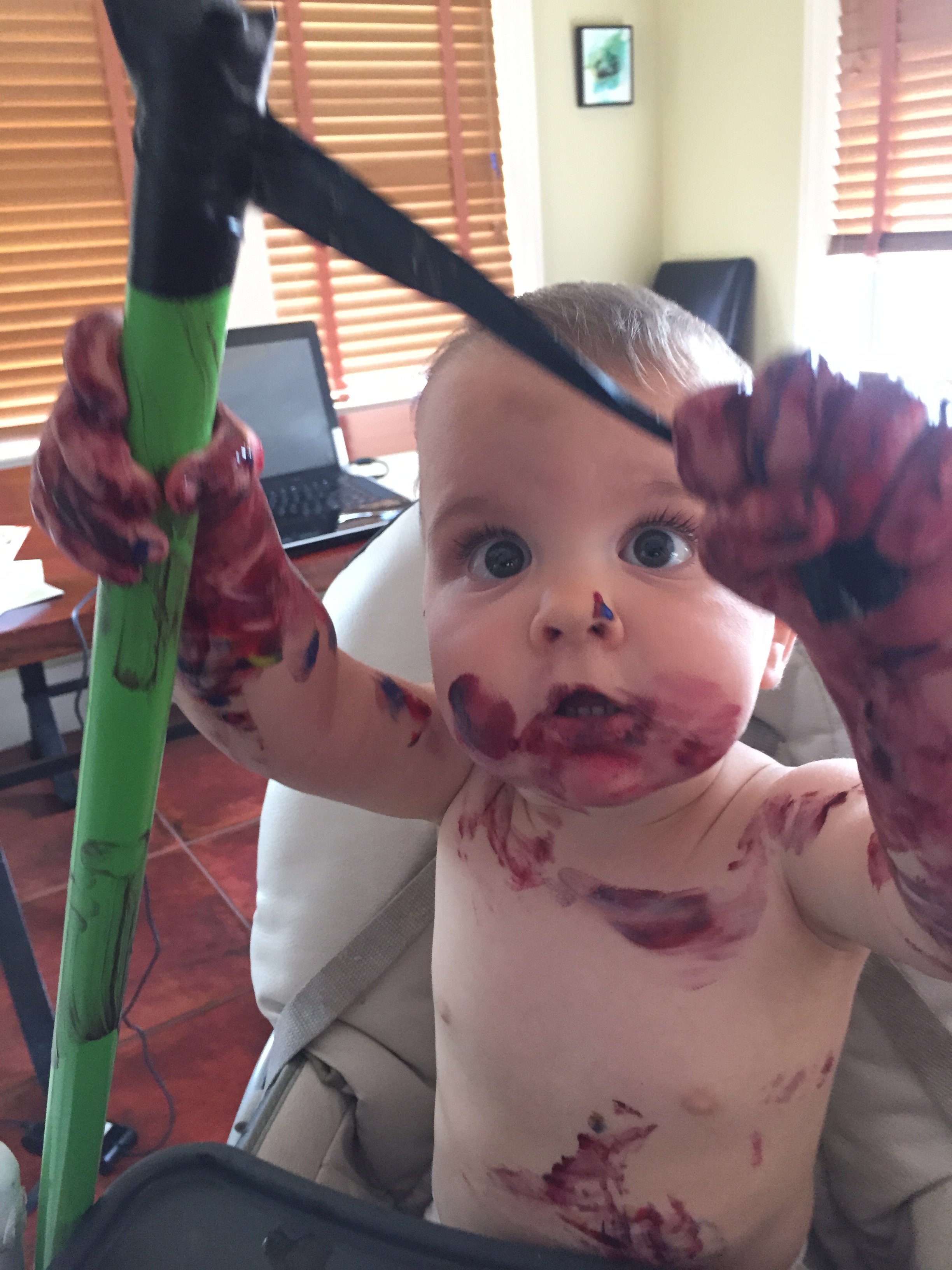 I think the babies will teach me more about being interactive with art in a museum than I’ve ever been able to do on my own. They are truly looking at the art and asking questions. It transforms the space into a conversation. There is no longer the feeling I can hear a pin drop. I did miss the quiet stillness I used to relish in when I would visit the museum on my own, the inspiration to go home and paint right away. But it’s not about “Me” anymore it’s about “Us” now. So when we got home I pulled out the finger paints and let jack and Fiona create! I feel recharged now. Maybe inspiring creativity in others can be a sense of fulfillment for me? I love how Jack and Fiona get super excited about cool things like I do! It makes me excited. I wonder how much of these early experiences will stay with Jack and Fiona?