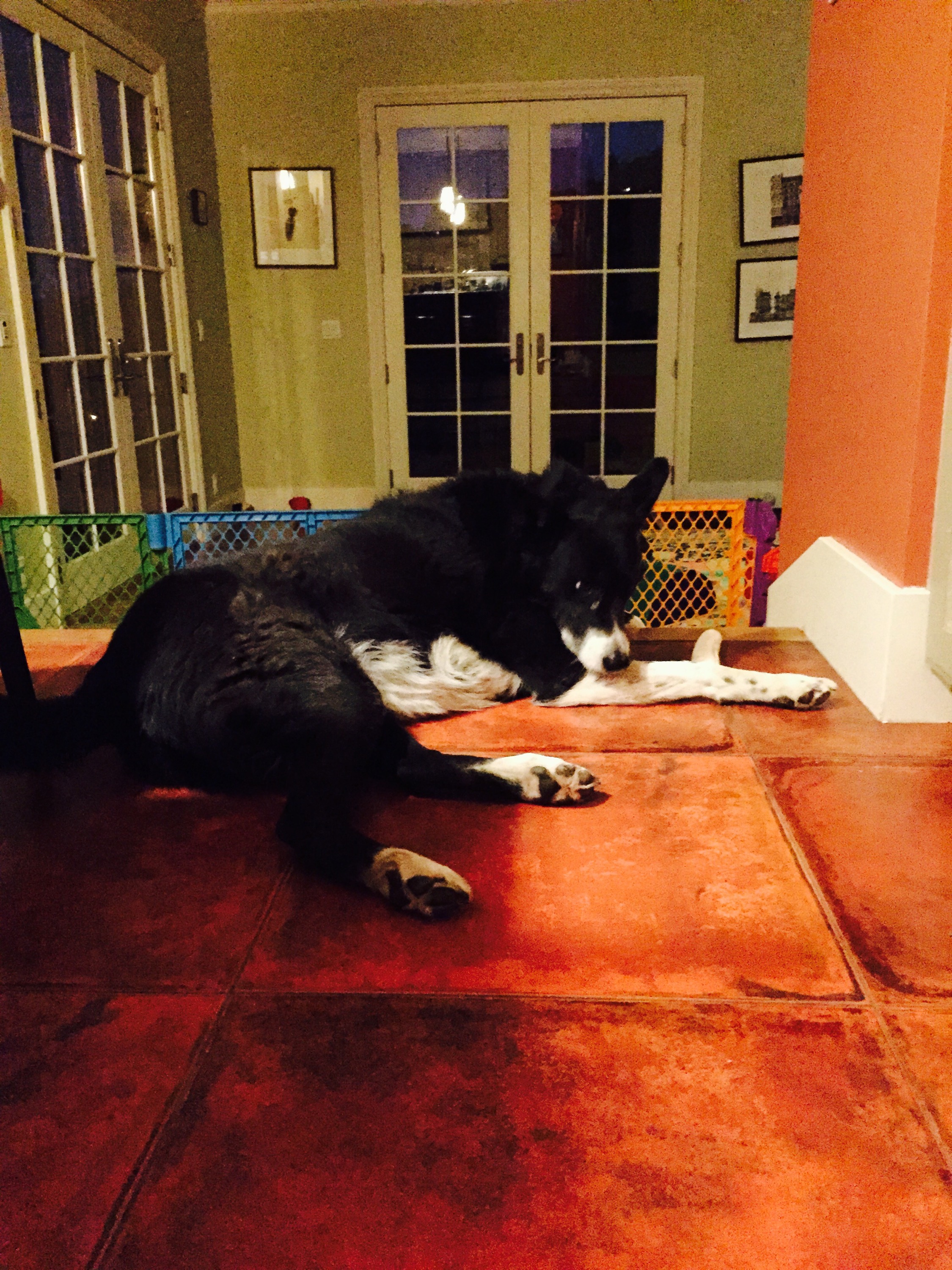 My mood has improved but all I want to do is paint. It’s not possible right now. I have prior longstanding obligations to attend. The refridgerator is humming. I wait for the haagen dazs to soften. I’m going to have to go hard at this kitchen in the morning. What can us ladies do to escape the slavery of these dirty rotten kitchens? I wish there was an invisible person who came in 3 times a day, after every meal time. The kitchen would be glistening. No sticky stuff on the granite, the counters would be dry not sopping wet. The floor, do I even need to explain the beautifully clean dry non sticky floor? Maybe someday they will invent one of these magic creatures. The beautiful creature on this picture is my girl Billy. She’s relaxing. Dessert is Finished. I must go now.